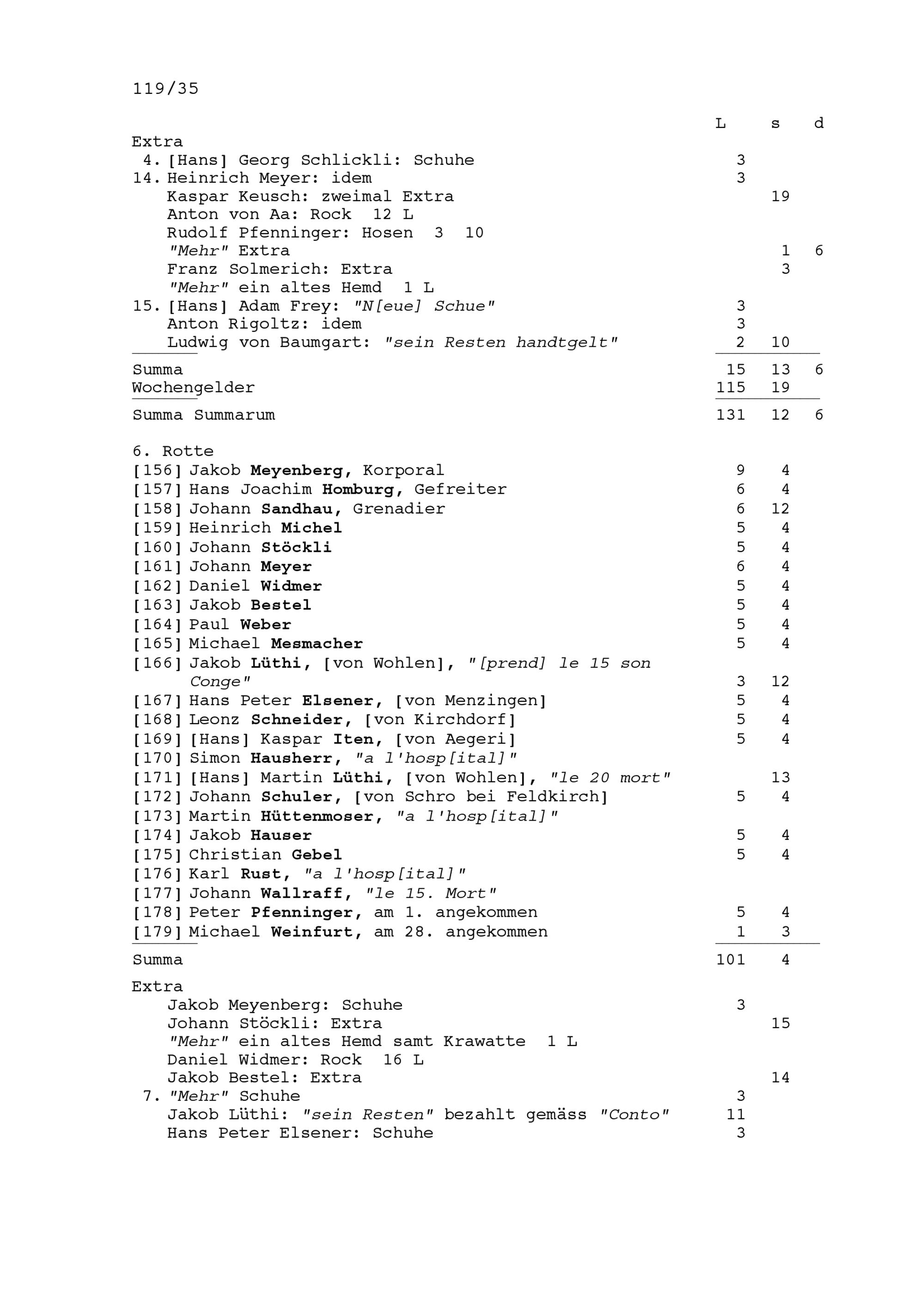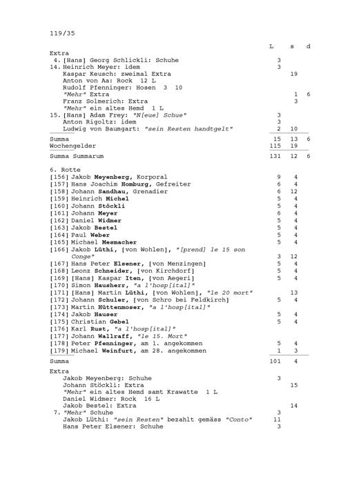 Mannschaftsrodel der Kompanie von Beat Jakob II. Zurlauben, Hauptmann im Regiment Pfyffer
