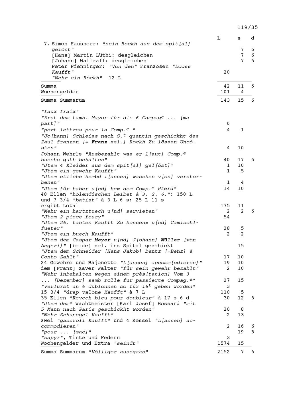 Mannschaftsrodel der Kompanie von Beat Jakob II. Zurlauben, Hauptmann im Regiment Pfyffer