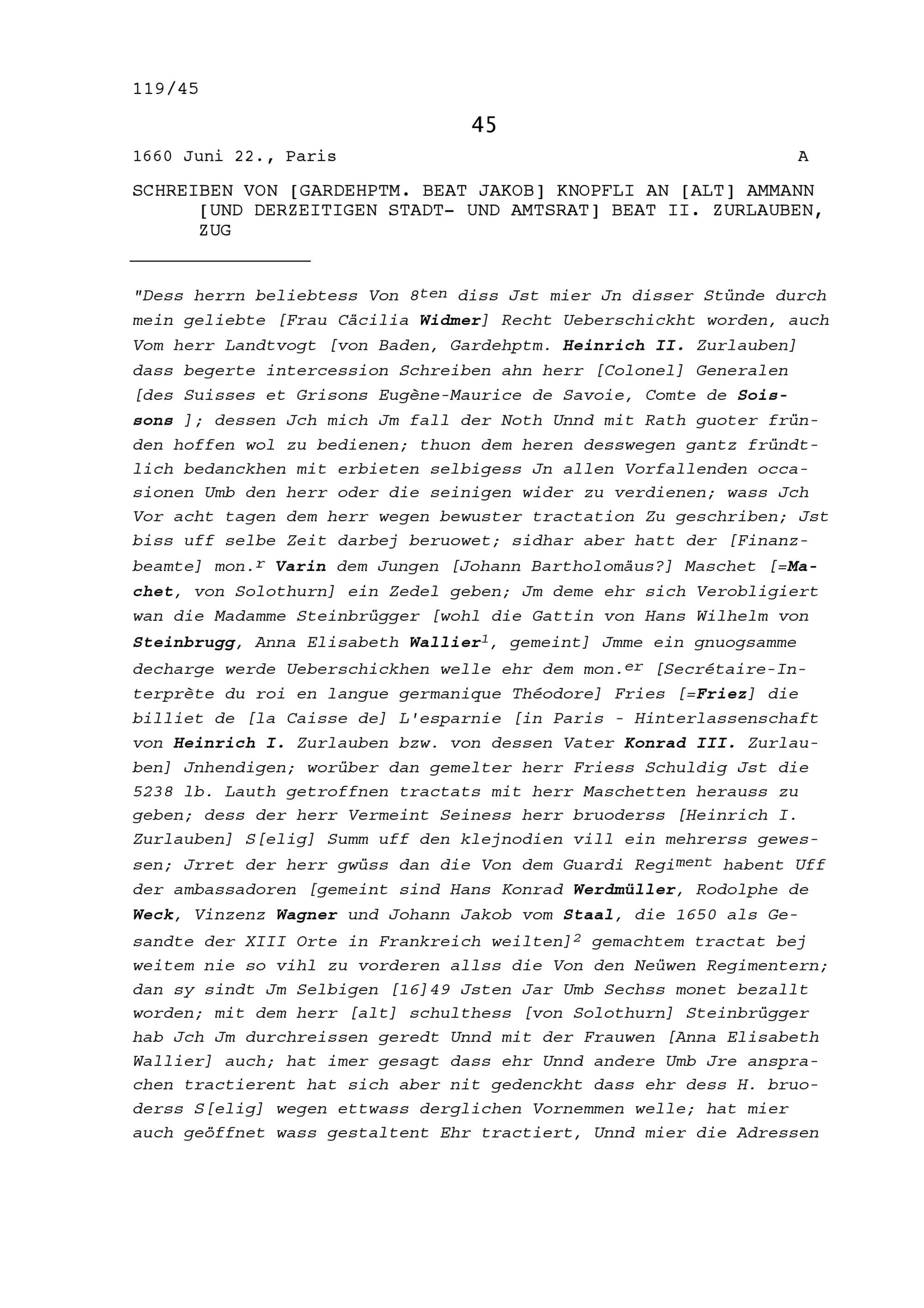 Schreiben von Beat Jakob Knopfli, Gardehauptmann, an Beat II. Zurlauben, Altammann...