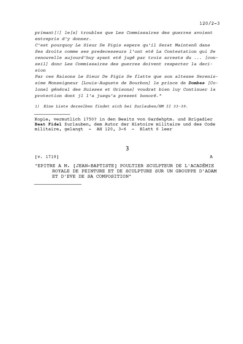 Schreiben an Jean-Baptiste Poultier, Bildhauer, einer Skulptur Adam und Eva