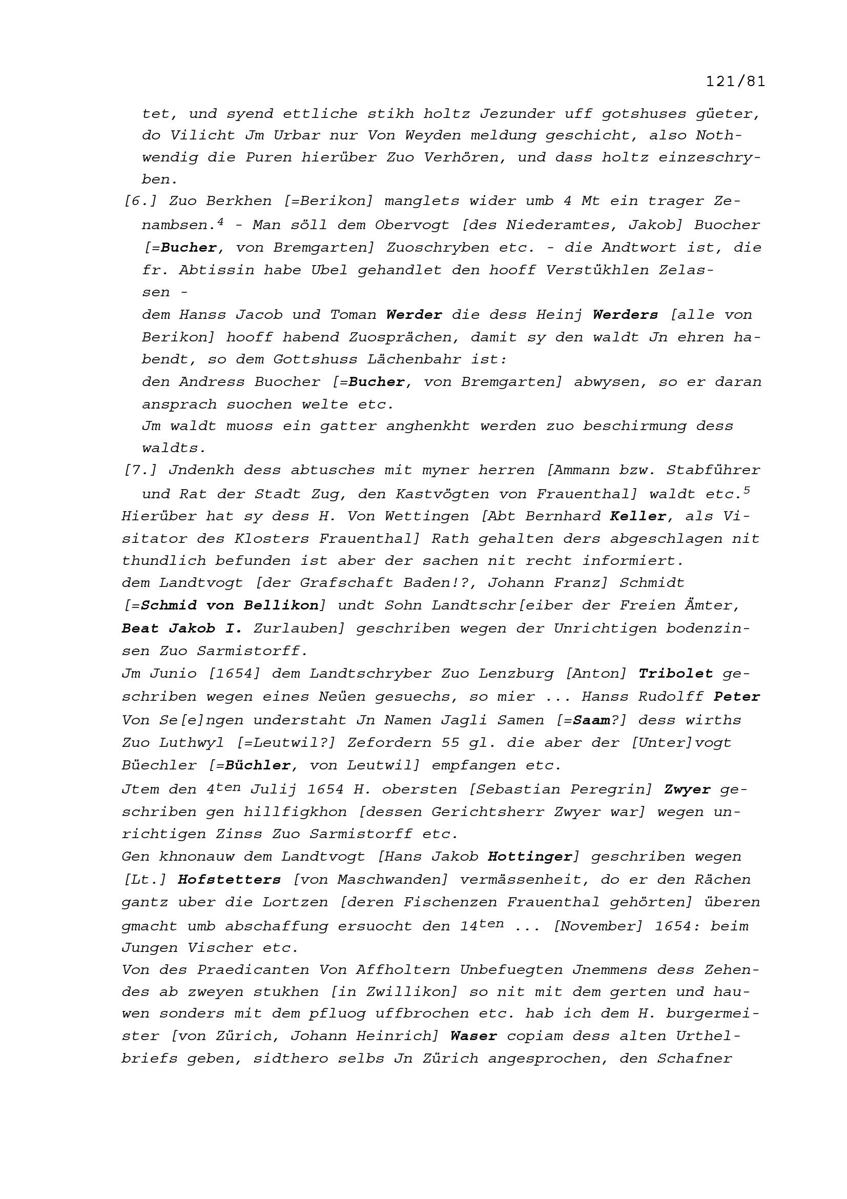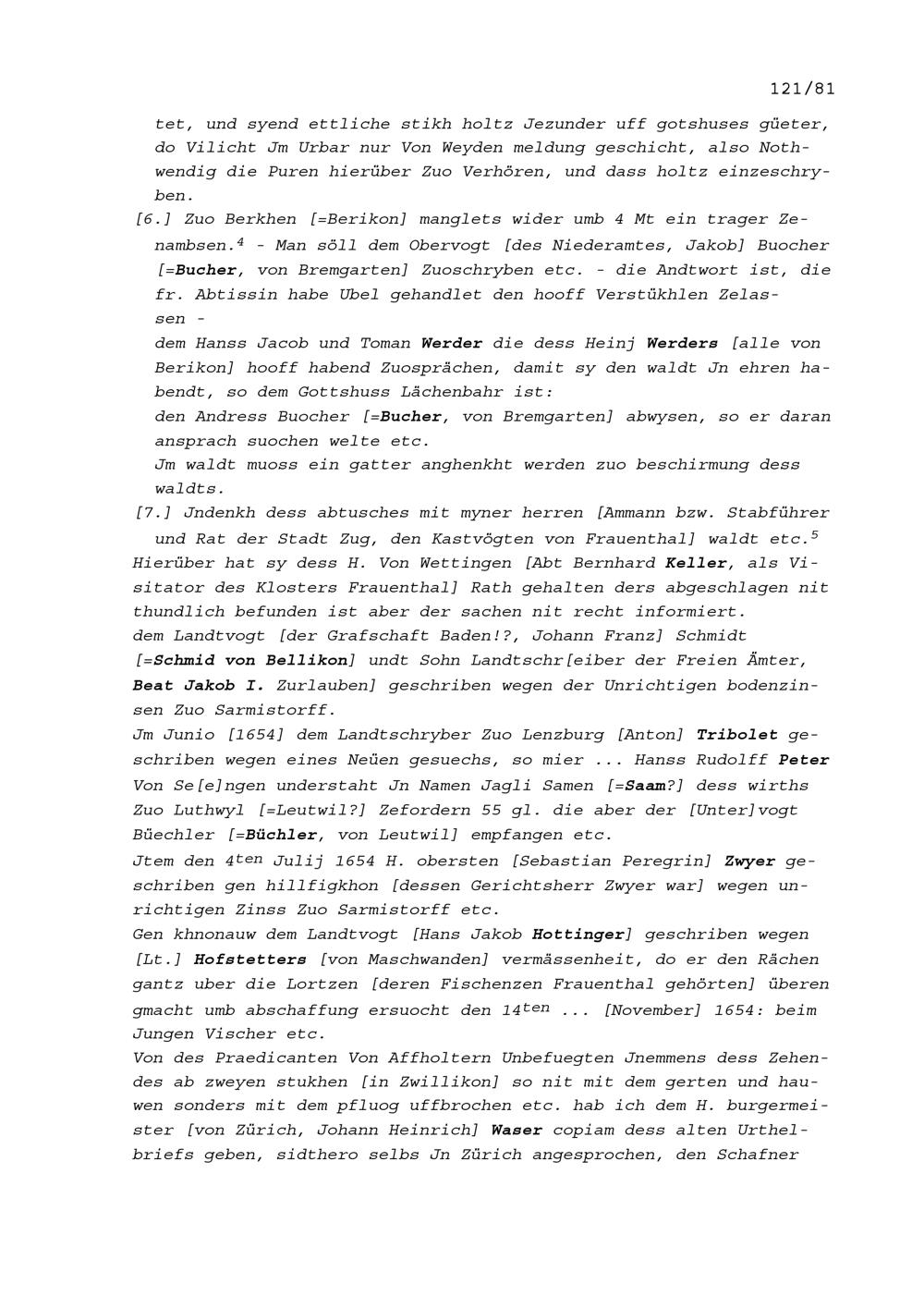 Notiz von Beat II. Zurlauben, Stadt- und Amtrat Zug, zum Güterbesitz des Frauenklosters...