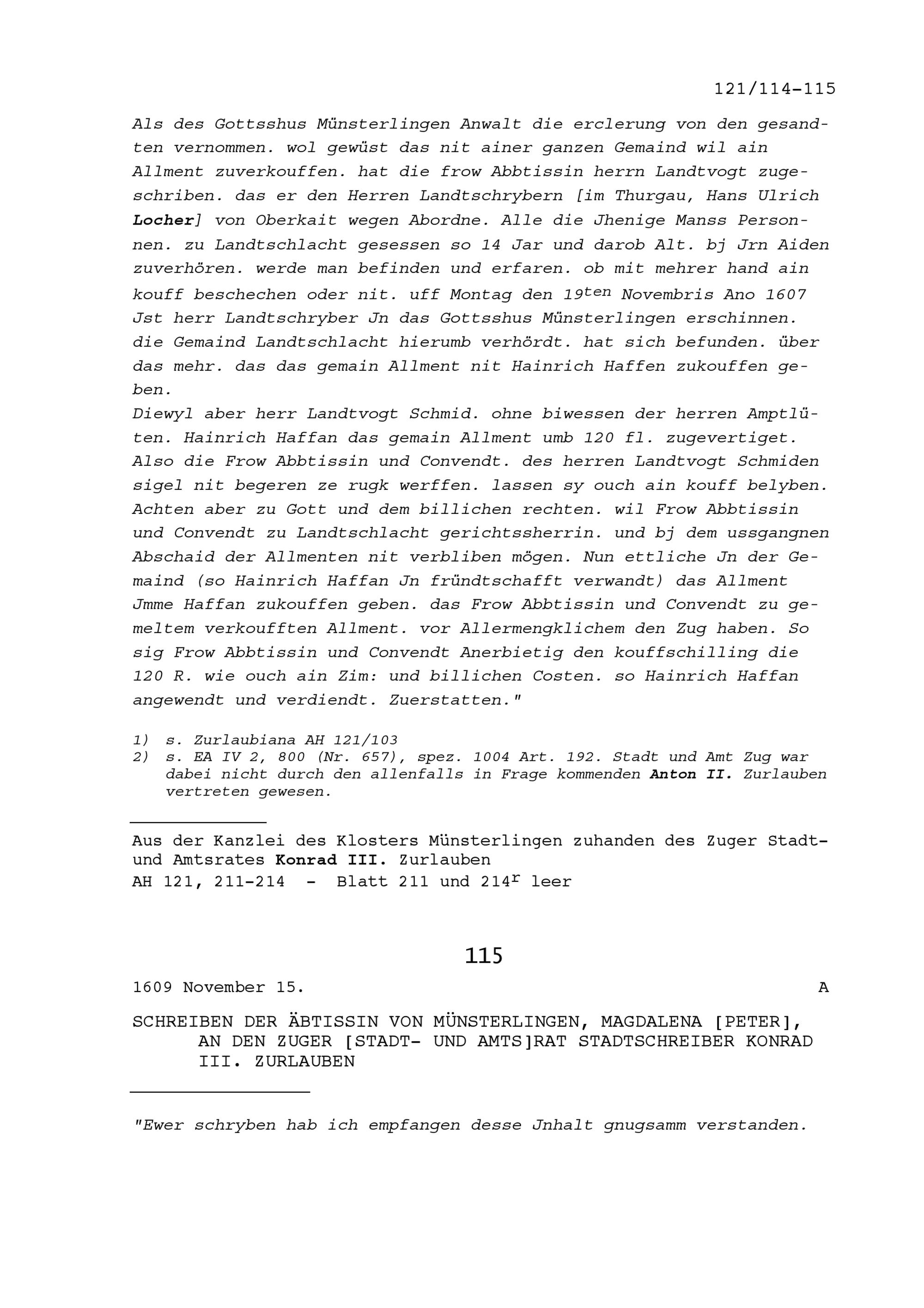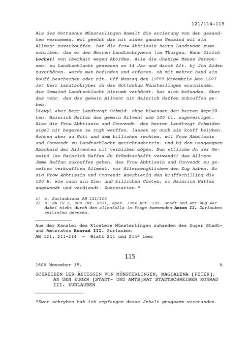 Schreiben von Magdalena Peter, Äbtissin von Münsterlingen, an Konrad III. Zurlauben, Stadt- und Amtrat Zug Stadtschreiber