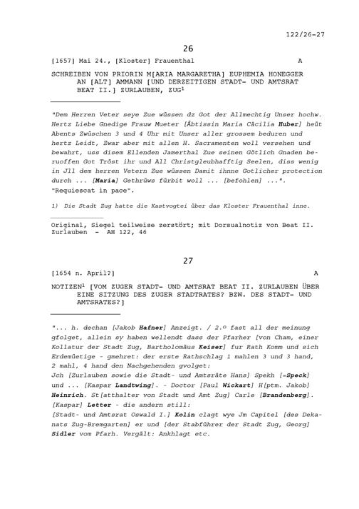 Schreiben von Maria Margaretha Euphemia Honegger, Klosterfrau und Priorin, an Beat II. Zurlauben, Altammann und Stadt- und Amtrat, Zug
