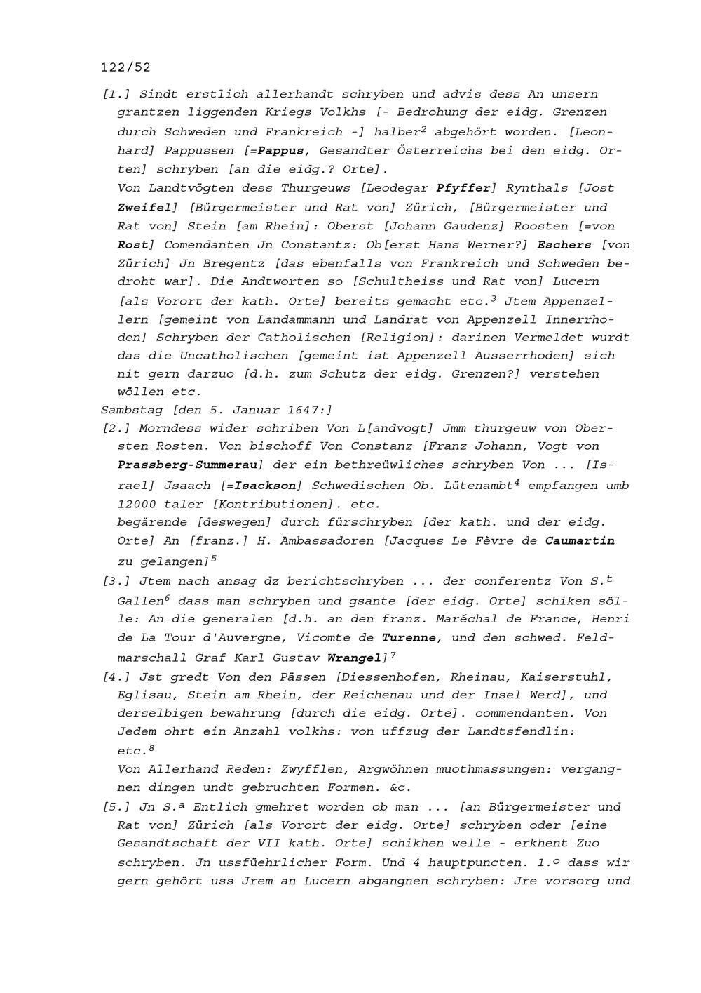 Notiz von Beat II. Zurlauben, Tagsatzungsgesandter, über die Tagsatzung der Sieben Katholischen Orte vom 4. bis 6. Januar 1647 in Luzern
