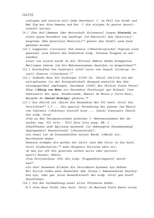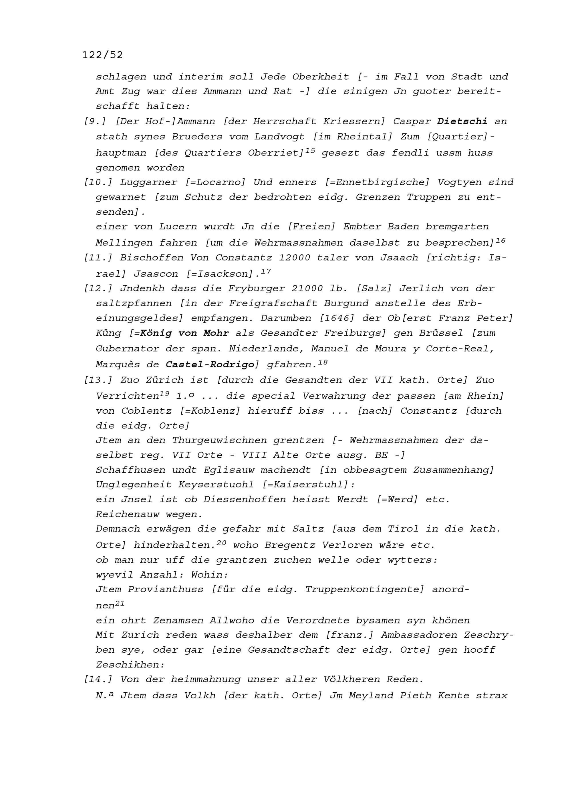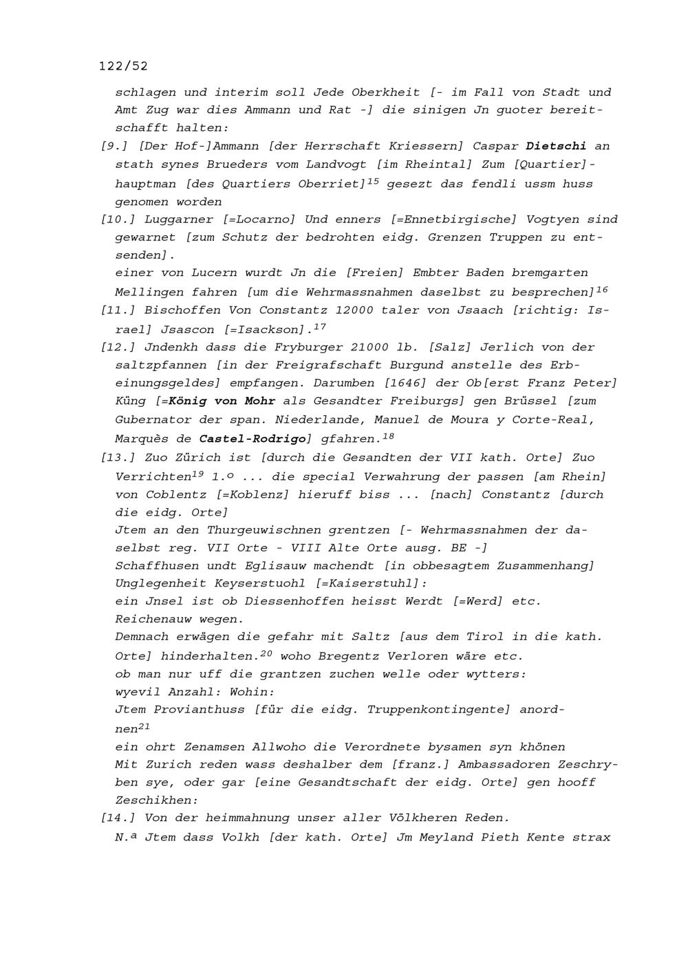 Notiz von Beat II. Zurlauben, Tagsatzungsgesandter, über die Tagsatzung der Sieben Katholischen Orte vom 4. bis 6. Januar 1647 in Luzern