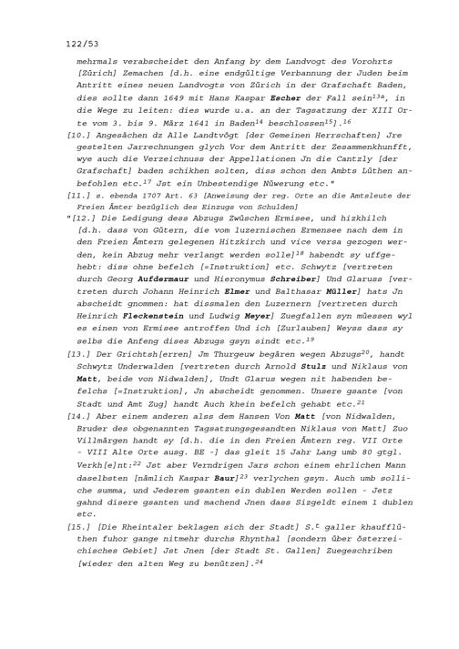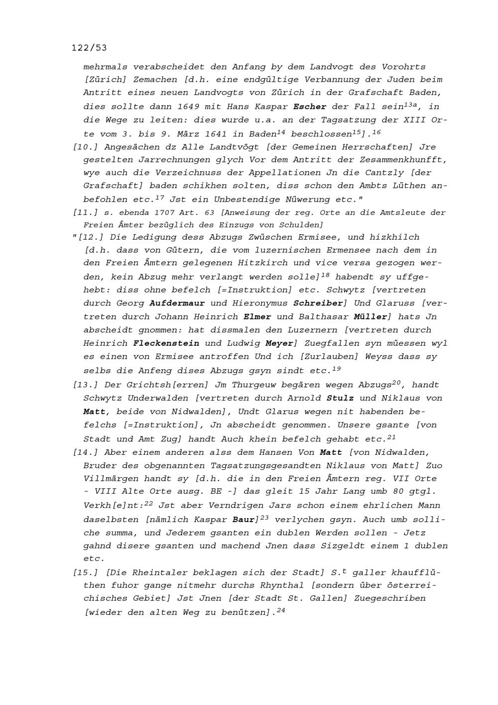 Abschied der Jahrrechnung vom 2. bis 18. Juli 1646 in Baden, aufgezeichnet von Beat II. Zurlauben, Stadt- und Amtrat Zug (Auszug