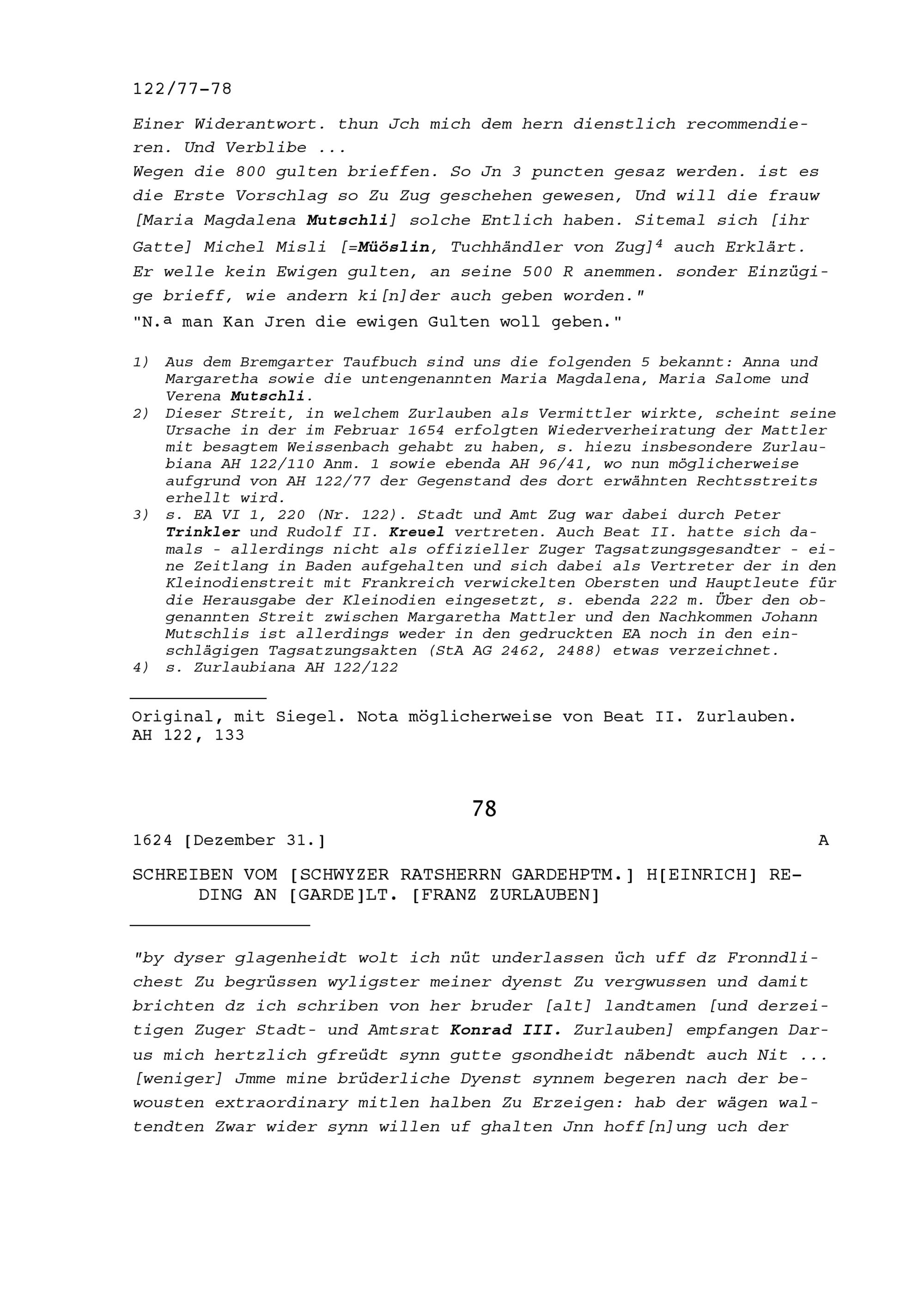 Schreiben von Heinrich Reding, Ratsherr Schwyz und Gardehauptmann, an Franz Zurlauben, Gardeleutnant