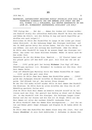 Kaufbrief, aufgerichtet zwischen Rudolf Stocklin von Zug als Verkäufer einerseits und Konrad III. Zurlauben, Ammann von Stadt und Amt Zug, als Käufer anderseits um den zum Sankt Konradshof gehörenden Schildhof in Zug