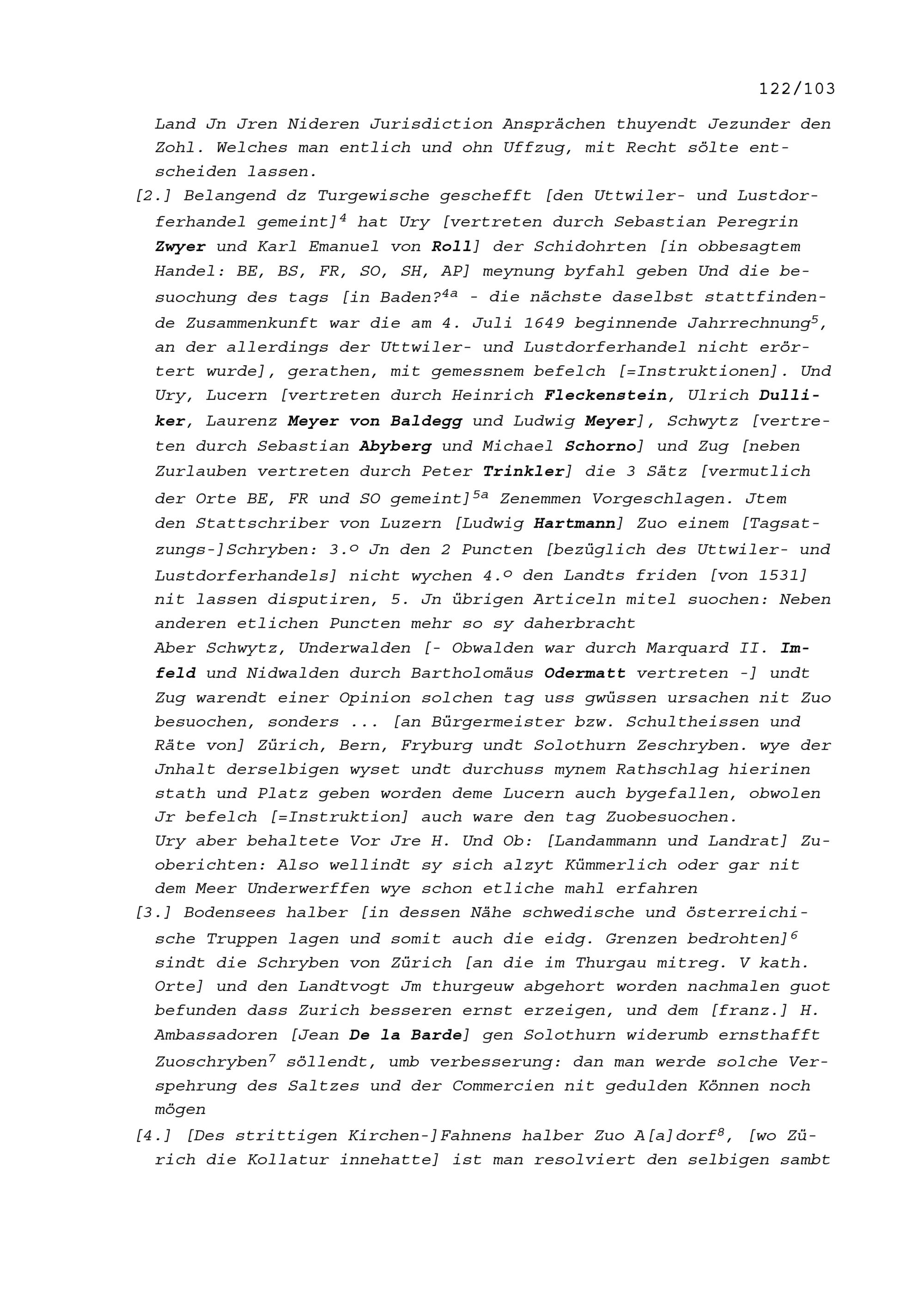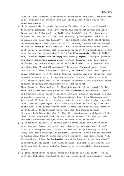 Notiz von Beat II. Zurlauben, Tagsatzungsgesandter, über die Tagsatzung der Fünf Katholischen Orte in Luzern vom 19. August 1648