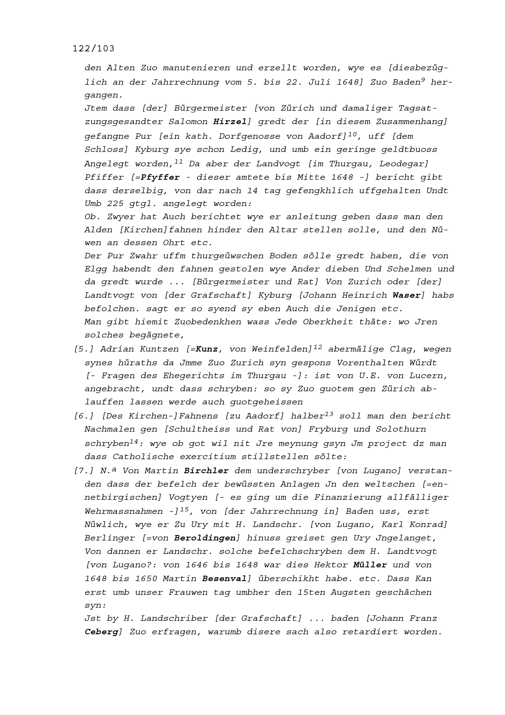 Notiz von Beat II. Zurlauben, Tagsatzungsgesandter, über die Tagsatzung der Fünf Katholischen Orte in Luzern vom 19. August 1648