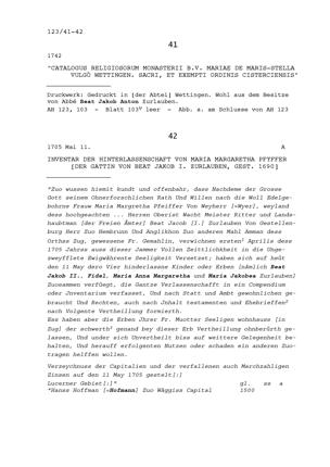 Druck: "Catalogus religiosorum monasterii B. V. Mariae des Marisstella vulgo Wettingen. sacri, et exempti ordinis cisterciensis"