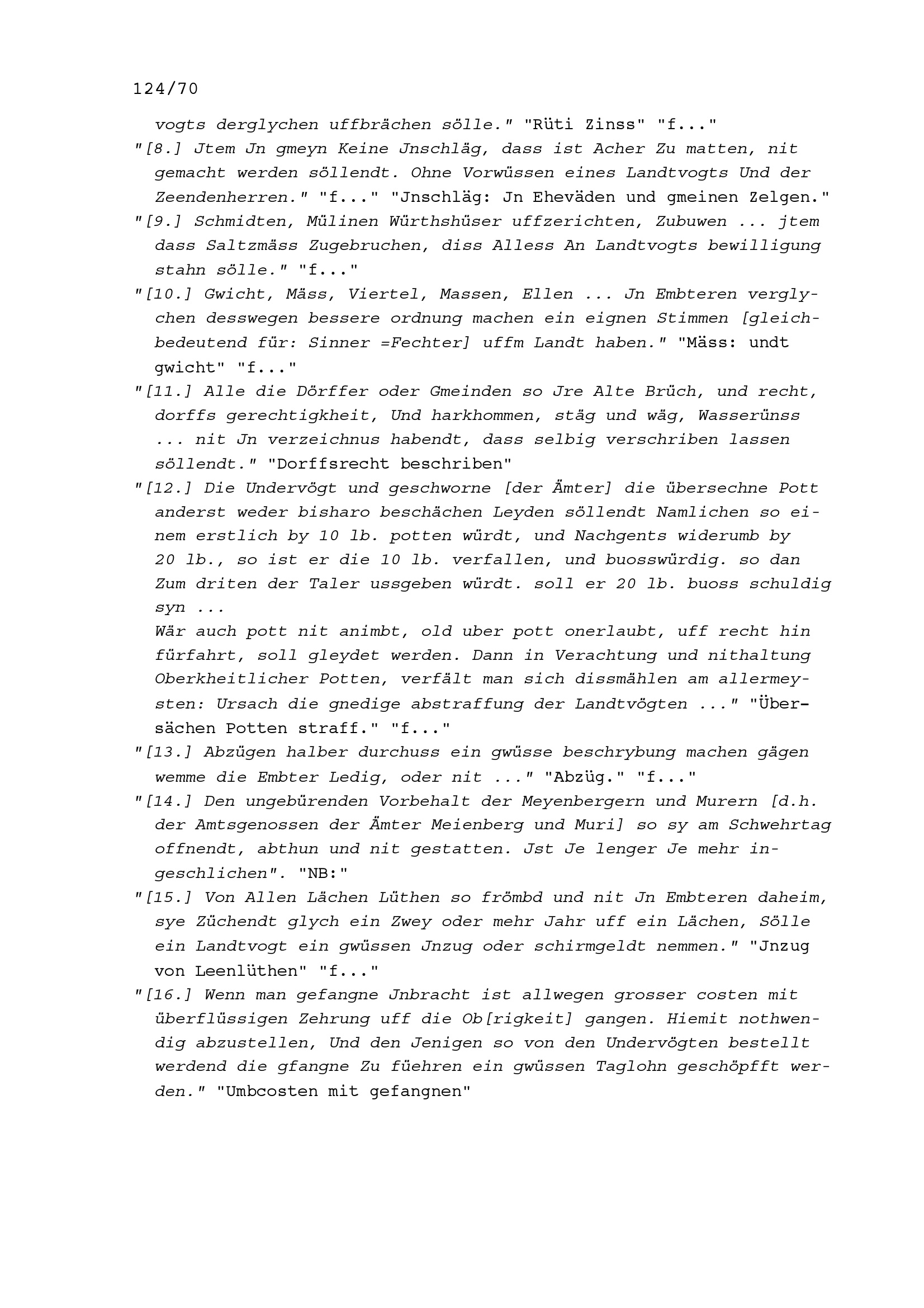 Fragen in Zusammenhang mit der Verwaltungsreform in den Freien Ämter, Änderungen und Neues, aufgezeichnet von Beat II. Zurlauben, Landschreiber