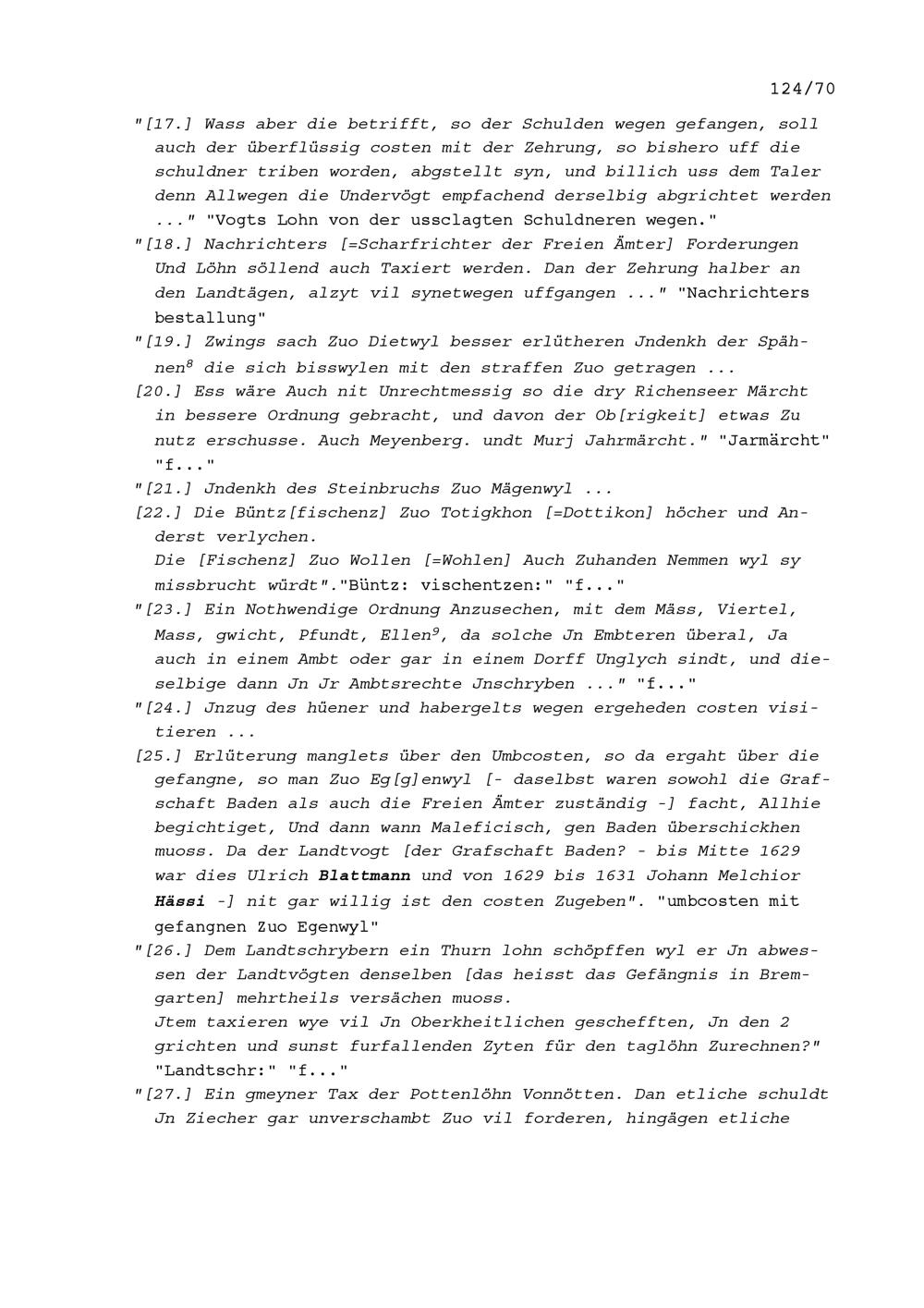 Fragen in Zusammenhang mit der Verwaltungsreform in den Freien Ämter, Änderungen und Neues, aufgezeichnet von Beat II. Zurlauben, Landschreiber