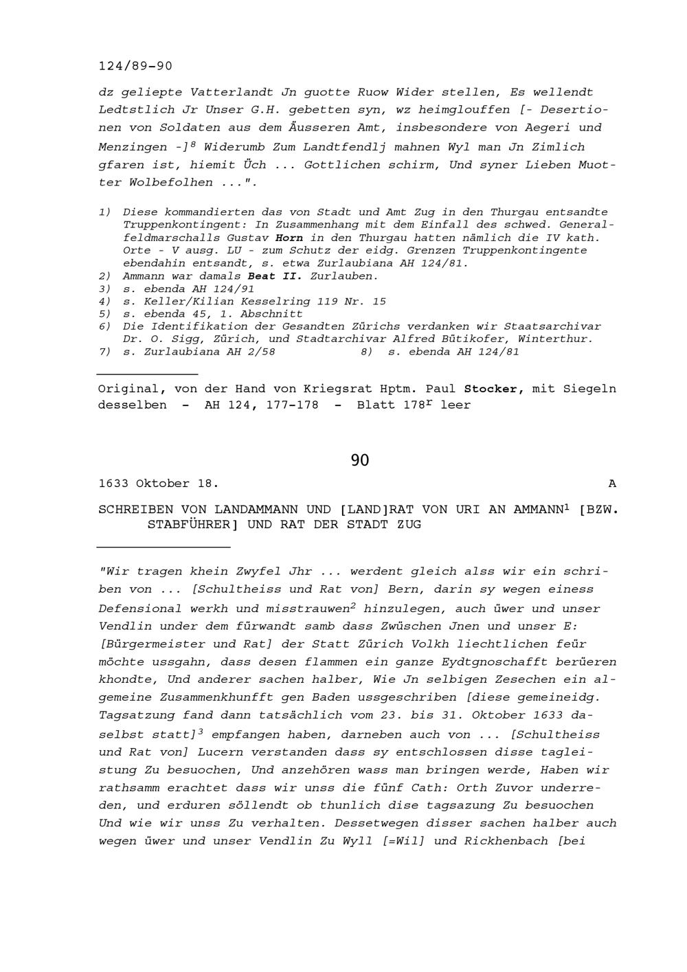 Schreiben des Landammanns und Landrats Uri an Ammann (Stabführer) und Rat der Stadt Zug