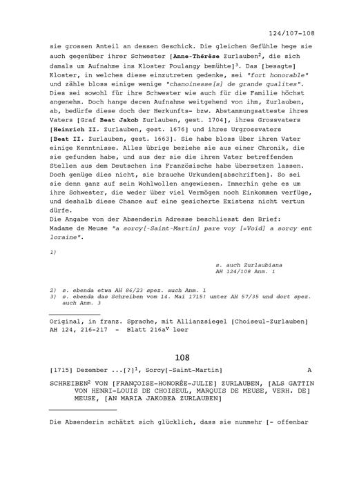 Schreiben von Françoise-Honorée-Julie Zurlauben, Gattin von Henri-Louis de Choiseul, Marquis de Meuse, an Maria Jakobea Zurlauben