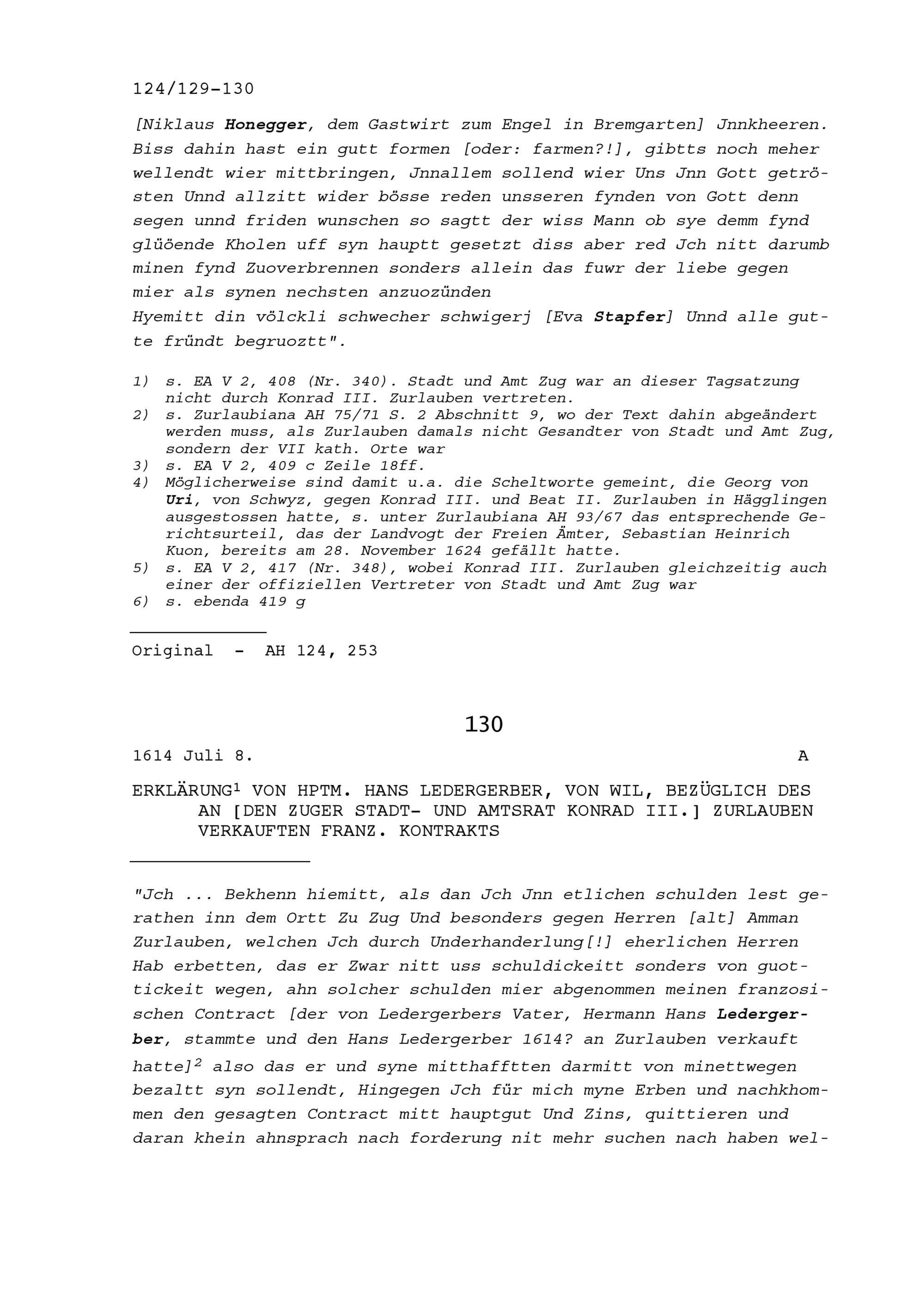 Erklärung von Hans Ledergerber, Hauptmann, von Wil, bezüglich des an Konrad III. Zurlauben, Stadt- und Amtrat Zug, verkauften französischen Kontrakts