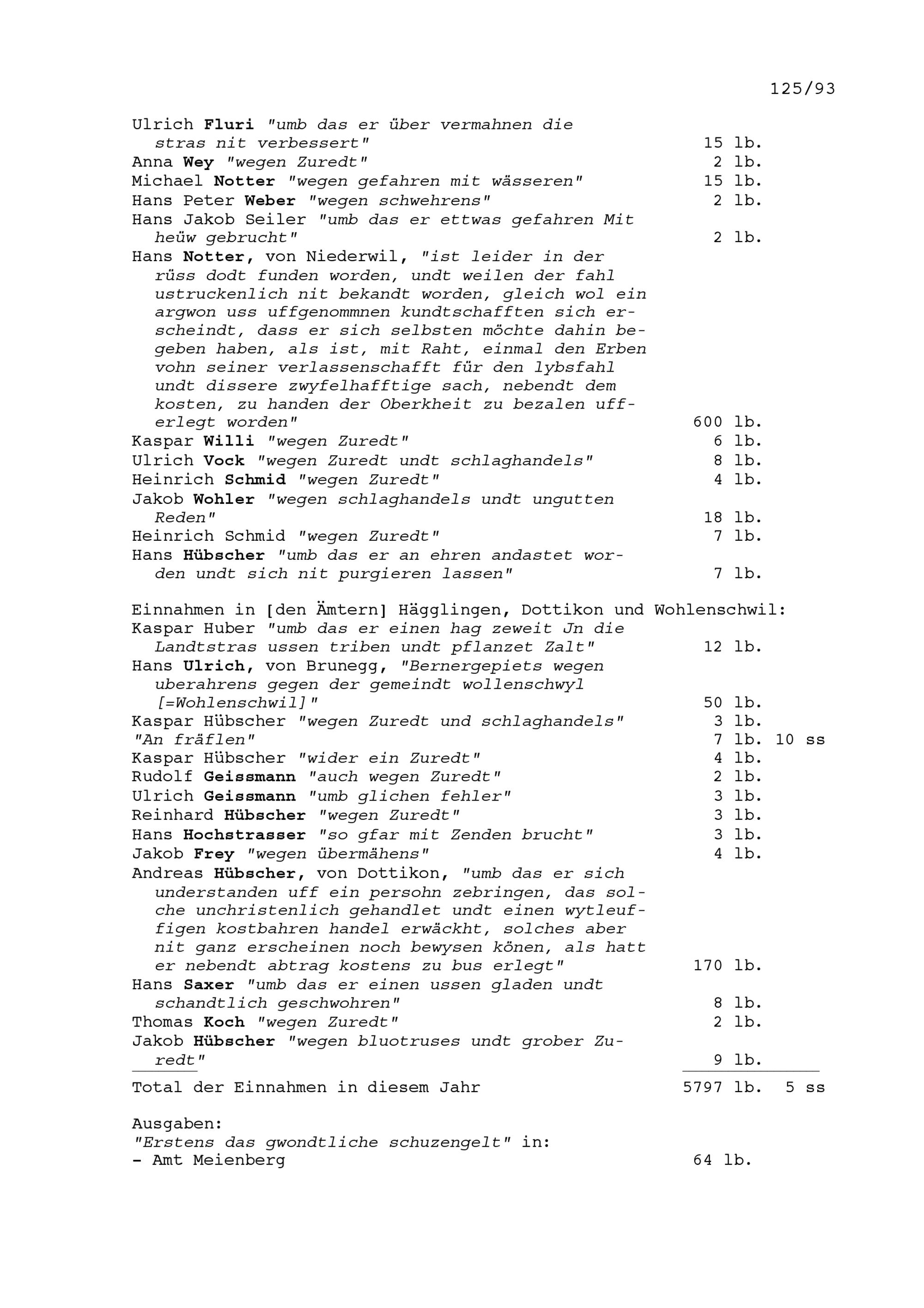 Landvogteirechnung der Freien Ämter unter Johann Städelin, Landvogt, von Schwyz