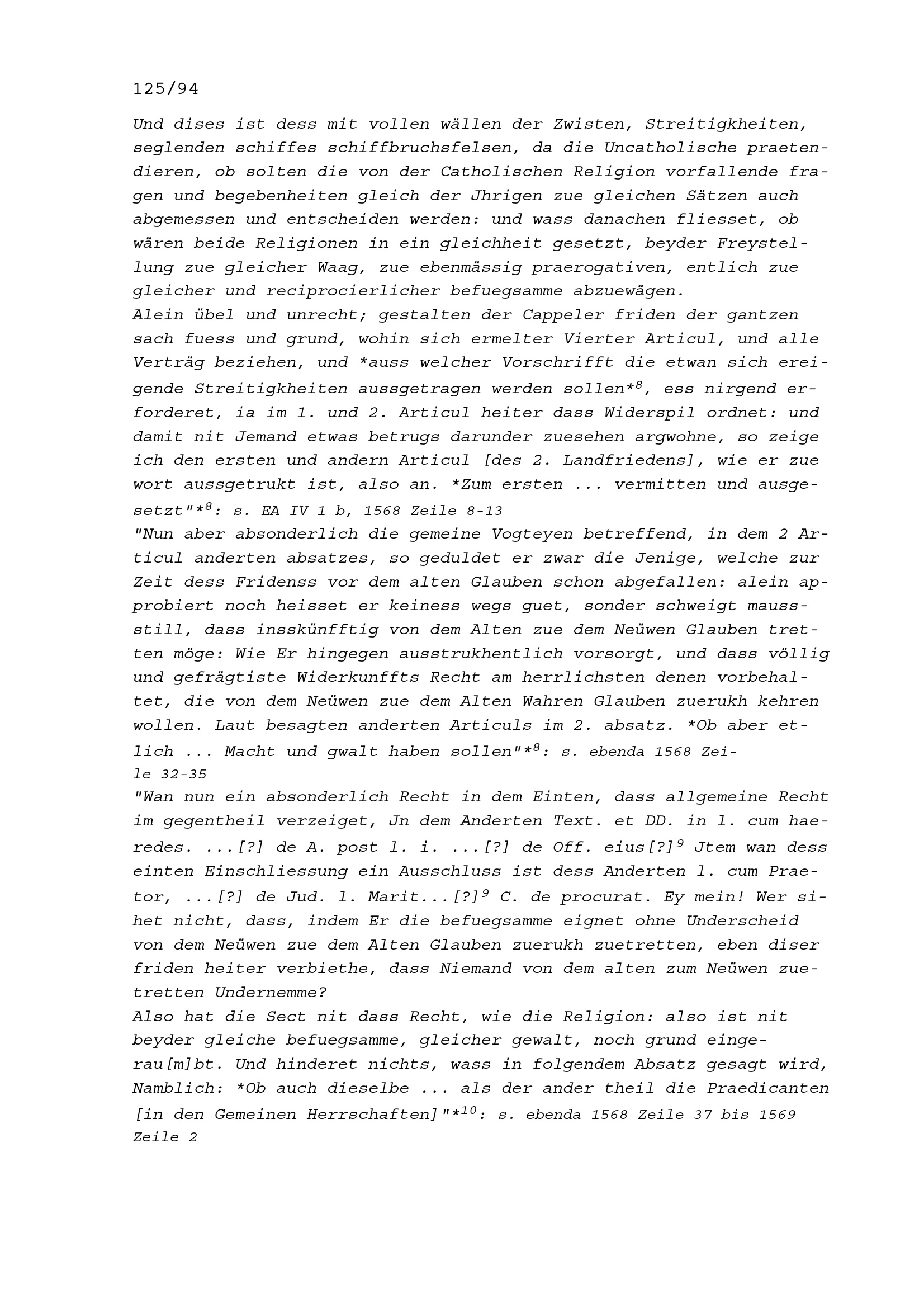 Friedenstraktat zu den konfessionellen Verhältnisse in der Eidgenossenschaft seit...