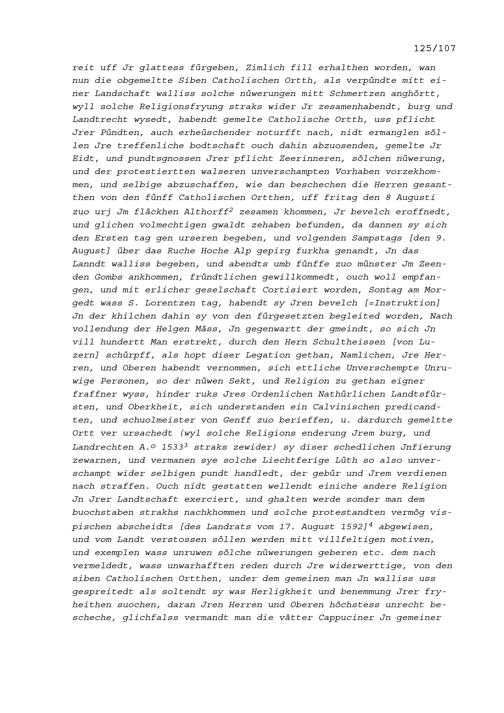 Bericht über die Verhandlungen der Gesandten der Sieben Katholischen Orte Luzern, Uri, Schwyz Unterwalden, Zug, Freiburg und Solothurn im Wallis vom 8. bis 20. August 1603