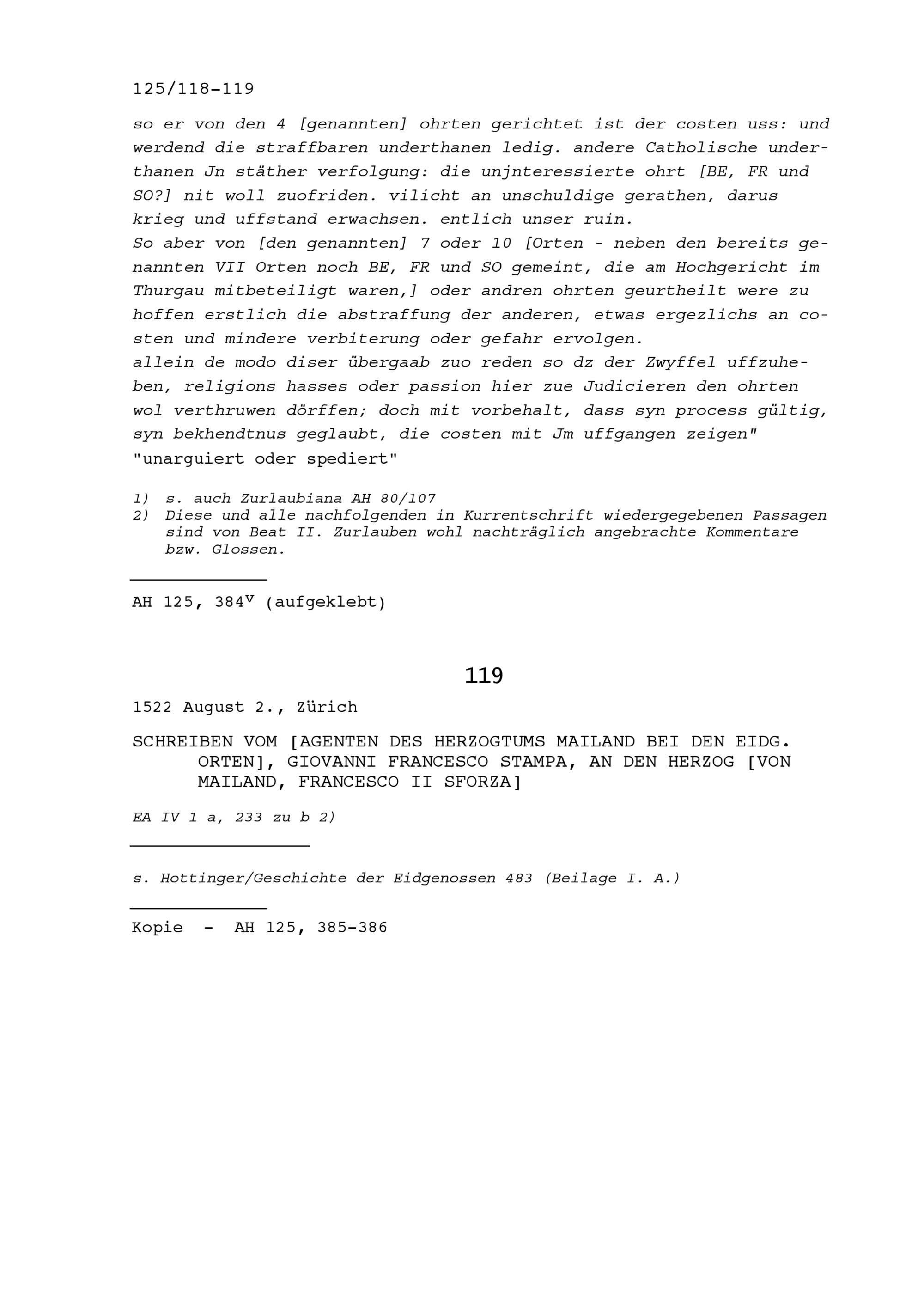 Schreiben von Giovanni Francesco Stampa, Agent des Herzogtums Mailand bei den Eidgenössischen Orten, an Francesco II. Sforza, Herzog von Mailand