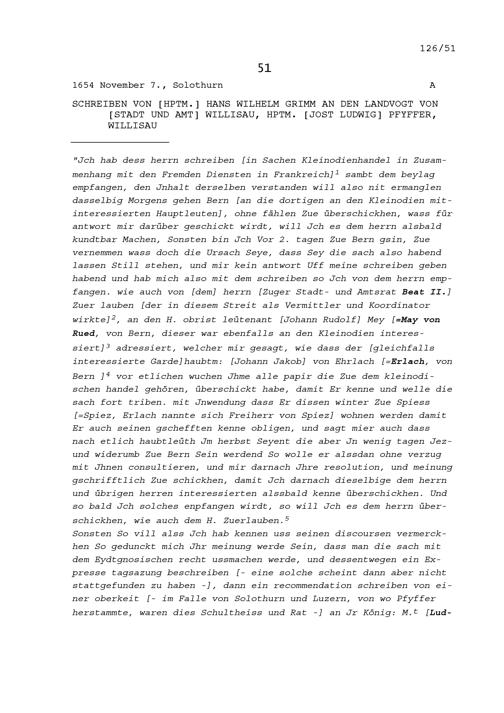 Schreiben von Hans Wilhelm Grimm, Hauptmann, an Jost Ludwig Pfyffer, Landvogt von Stadt und Amt Willisau und Hauptmann, Willisau