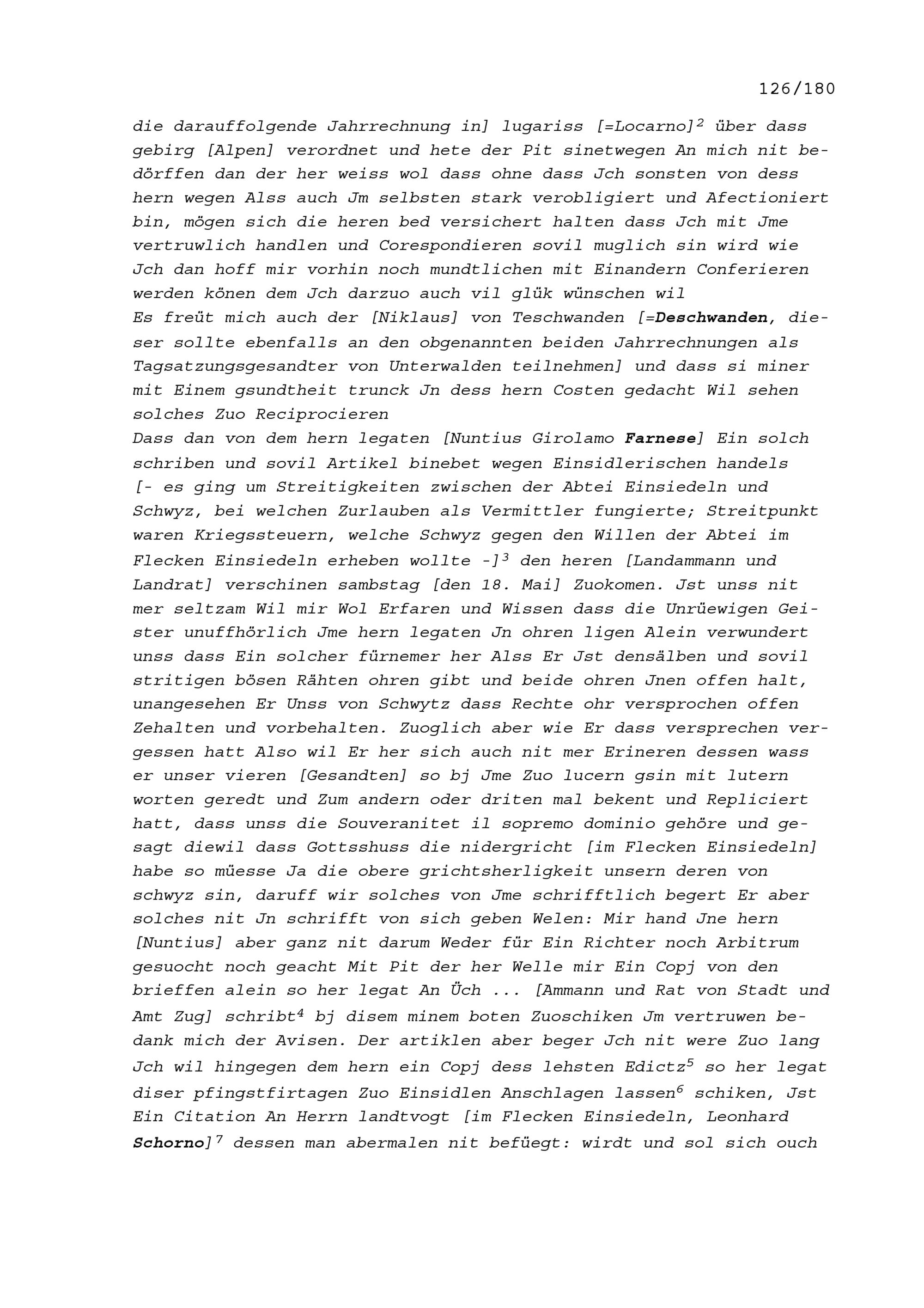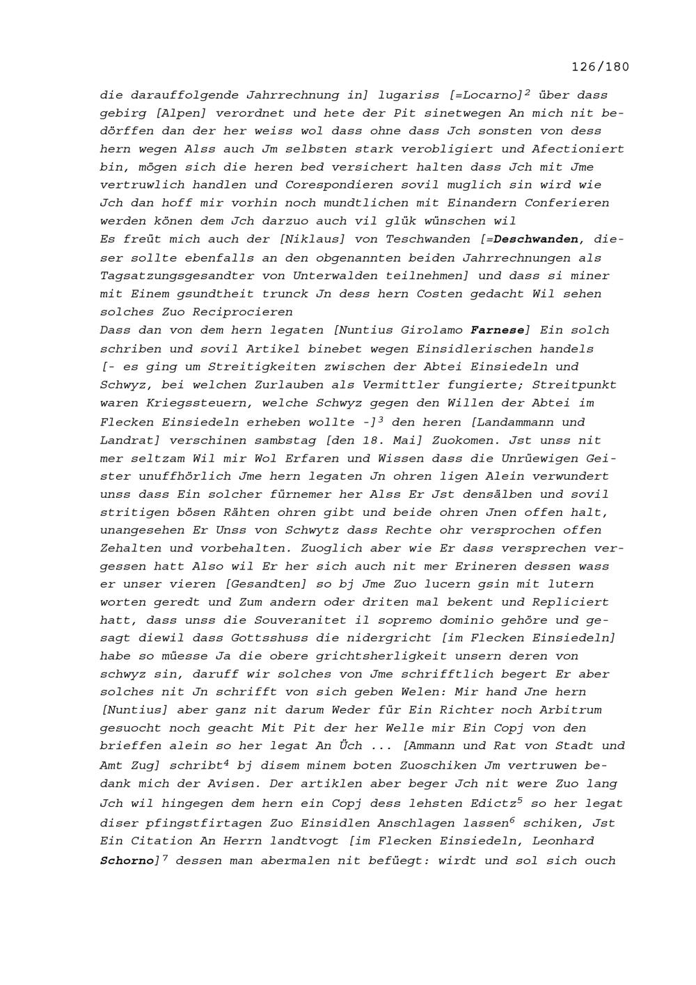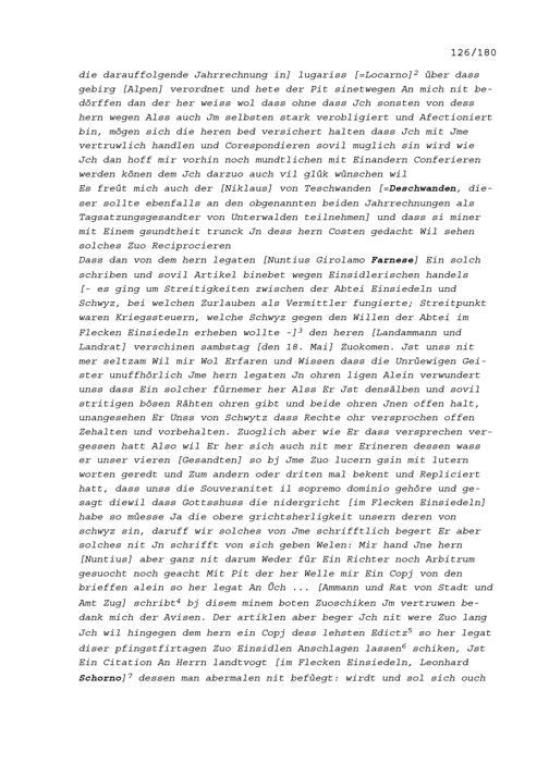 Schreiben von Johann Kaspar Ceberg, Ratsherr, an Beat II. Zurlauben, Ammann von Stadt und Amt Zug Hauptmann, Zug