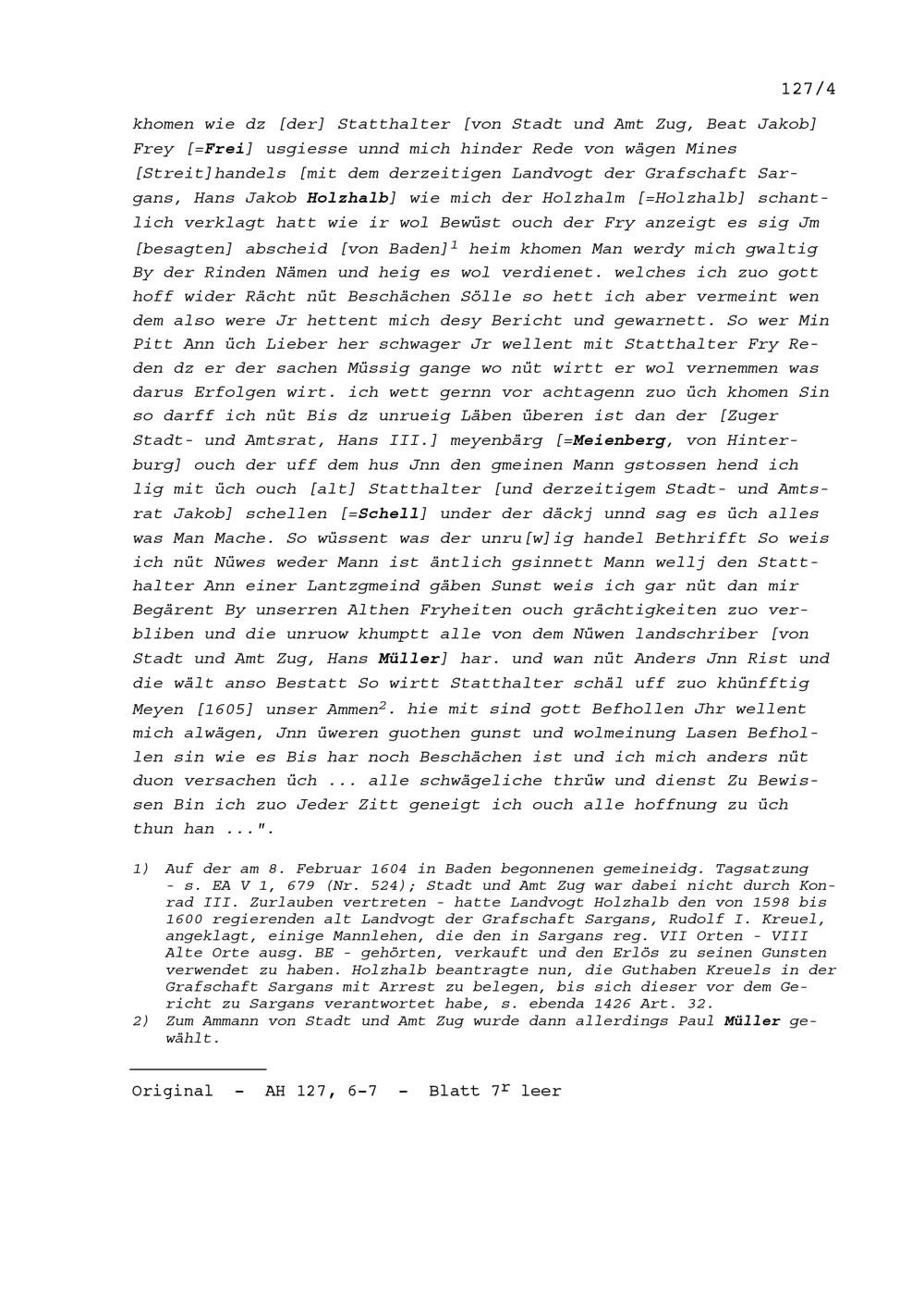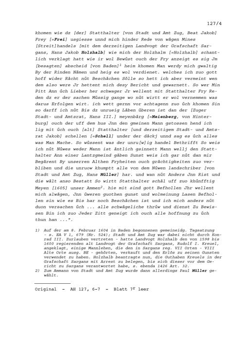 Schreiben von Rudolf I. Kreuel, Stadt- und Amtrat Zug, von Baar, an Konrad III. Zurlauben, Zuger Stadtschreiber