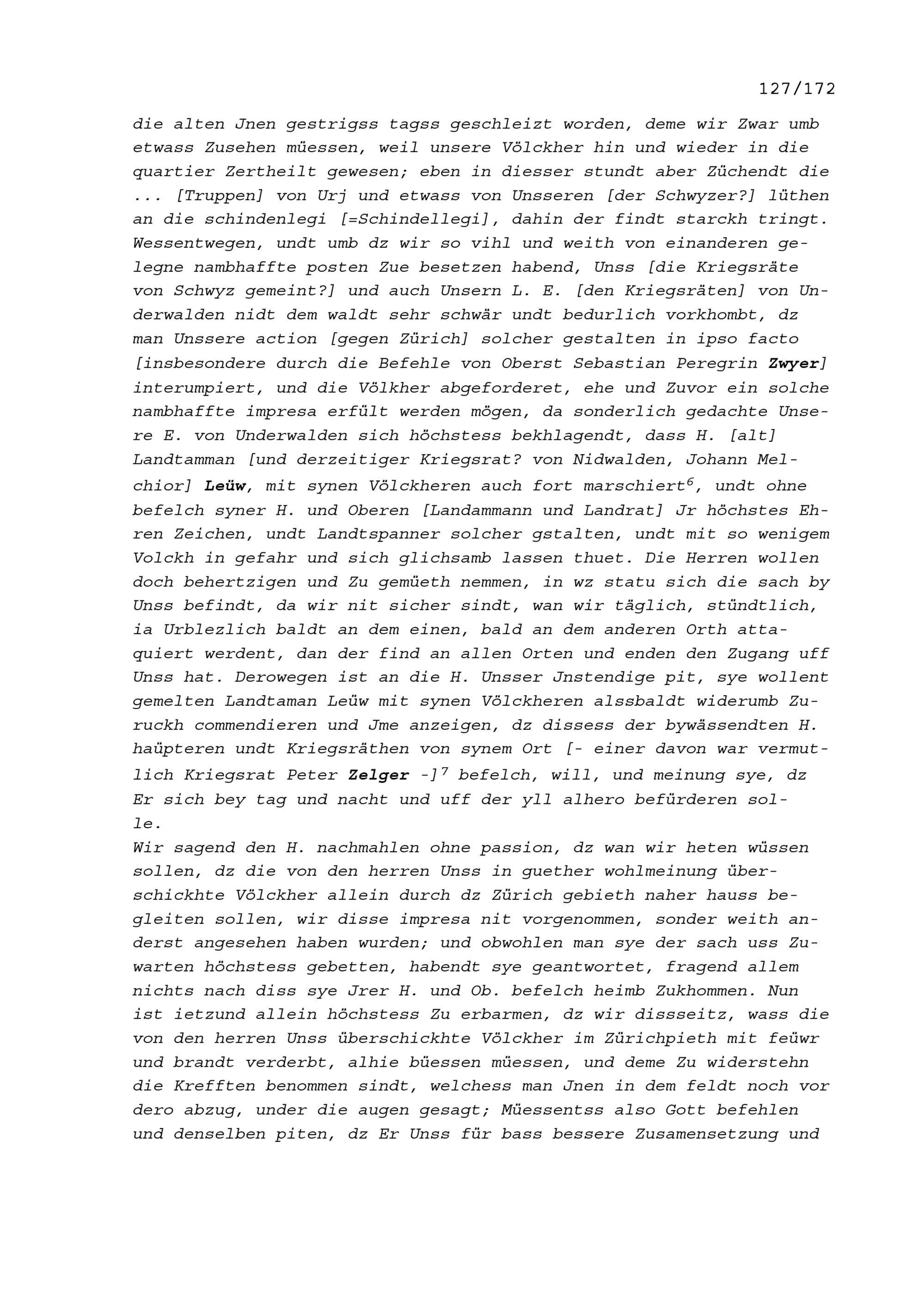 Schreiben der zu Pfäffikon versammelten Häupter und Kriegsräte der Drei Katholischen Orte Uri, Schwyz und Unterwalden (Ob- und Nidwalden) an die in Zug versammelten Landammänner beziehungsweise Ammann, Landeshauptleute und Kriegsräte der Fünf Katholischen Orte