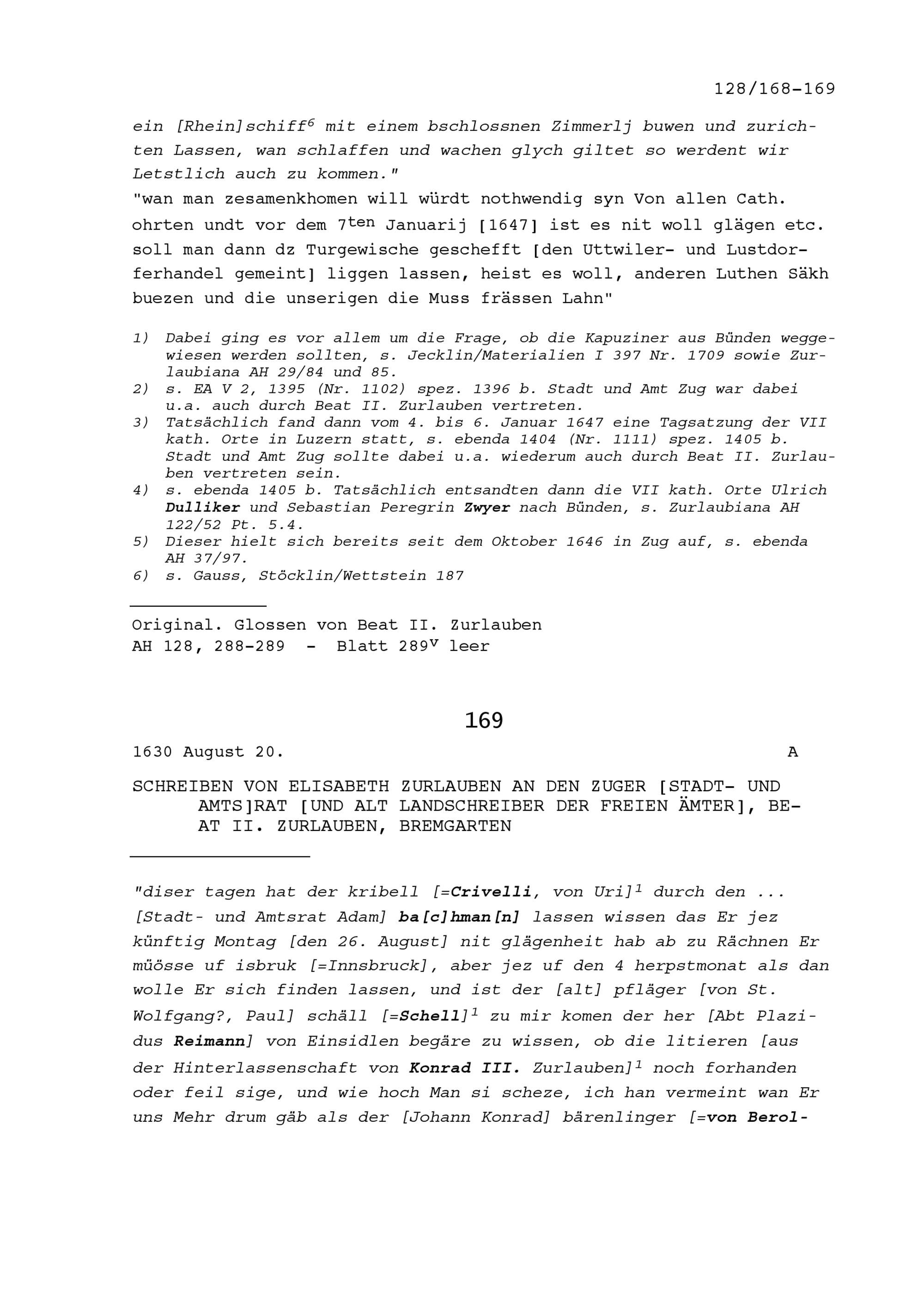 Schreiben von Elisabeth Zurlauben an Beat II. Zurlauben, Stadt- und Amtrat Zug und Altlandschreiber der Freien Ämter, Bremgarten