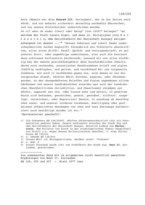 Erklärungen bezüglich zweier Urbarien betreffend die Pfarrei und Kaplanei in Risch von 1598 sowie des Libells von 1600 betreffend die Ordnungen und Satzungen der Gerichtsherrschaft Buonas