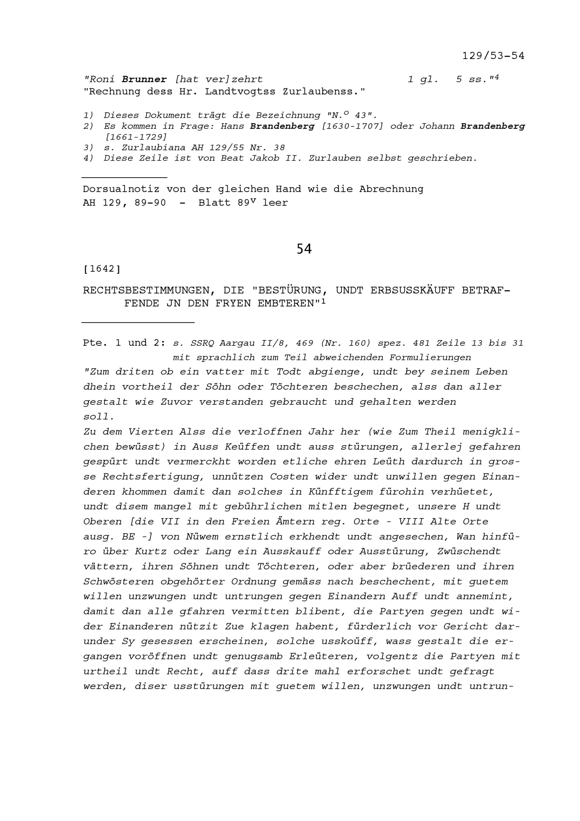 Rechtsbestimmungen über die Besteuerung, und Erbauskäufe in den Freien Ämter