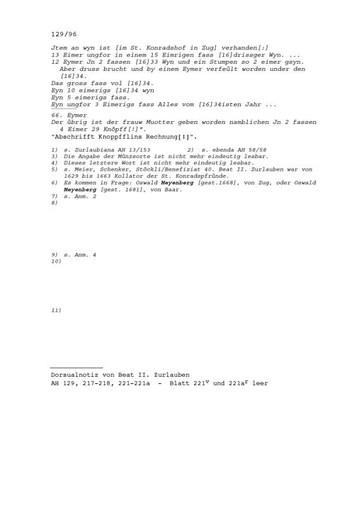 Inventar von Schuldbriefen und Gegenständen aus dem Besitz von Heinrich I. Zurlauben, Gardeleutnant, welche Beat Jakob Knopfli, an Konrad Brandenberg, Statthalter von Stadt und Amt Zug, übergab