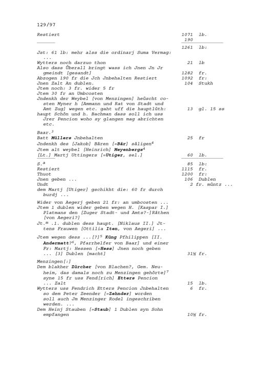 Bericht von Beat II. Zurlauben, Zuger Pensionenabholer und Pensionenausteiler Frankreichs in Stadt und Amt Zug, wegen gewissen Pension