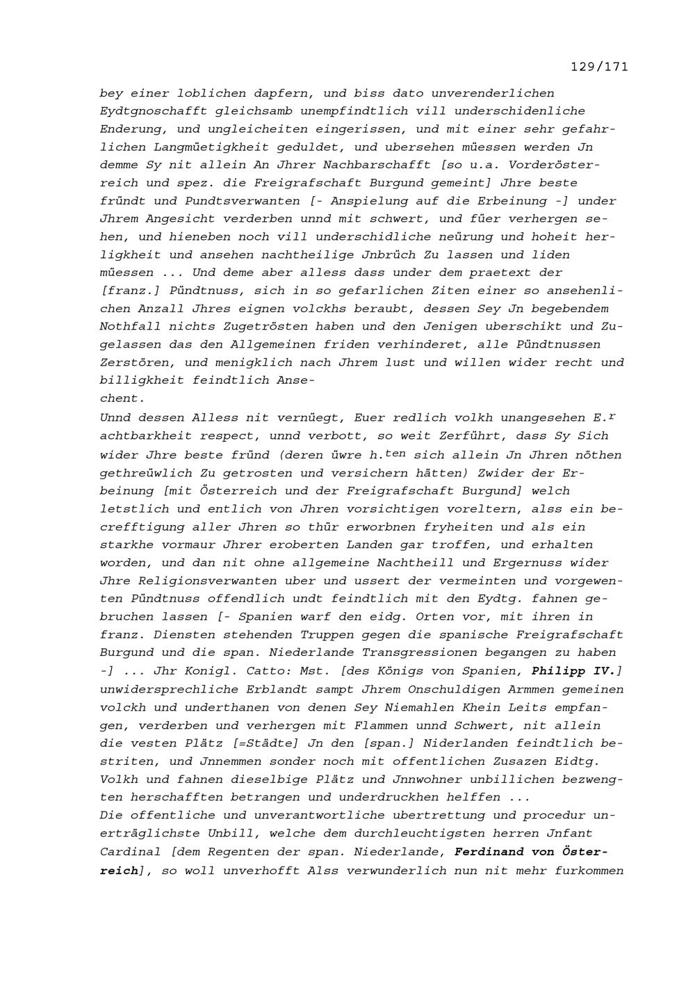 Schreiben von Karl Emanuele Casati, Ambassador von Mailand-Spanien, an die mit Mailand-Spanien verbündeten Sieben Katholischen Orte