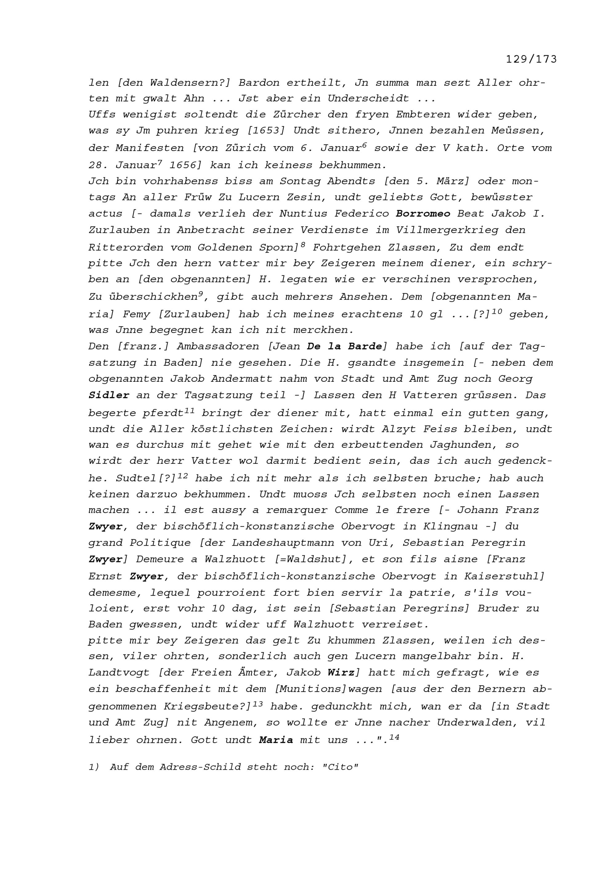 Schreiben von Beat Jakob I. Zurlauben, Oberstfeldwachtmeister und Landschreiber der...