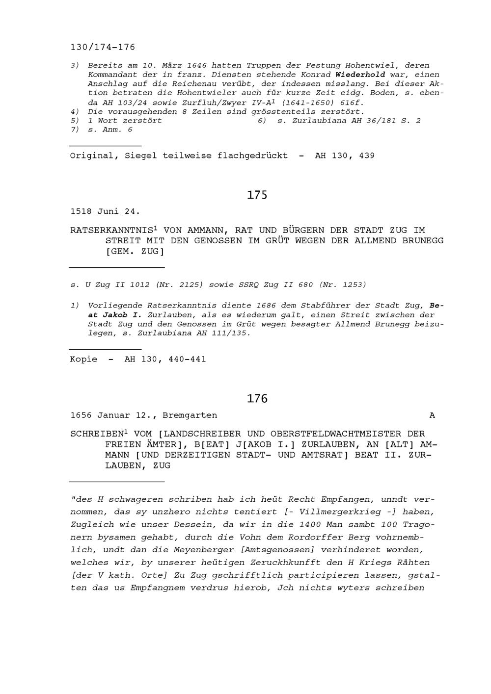 Ratsbeschluss des Ammanns, Rats und der Bürger der Stadt Zug im Streit mit den Genossen im Grüt wegen der Allmend Brunegg in Gemeinde Zug