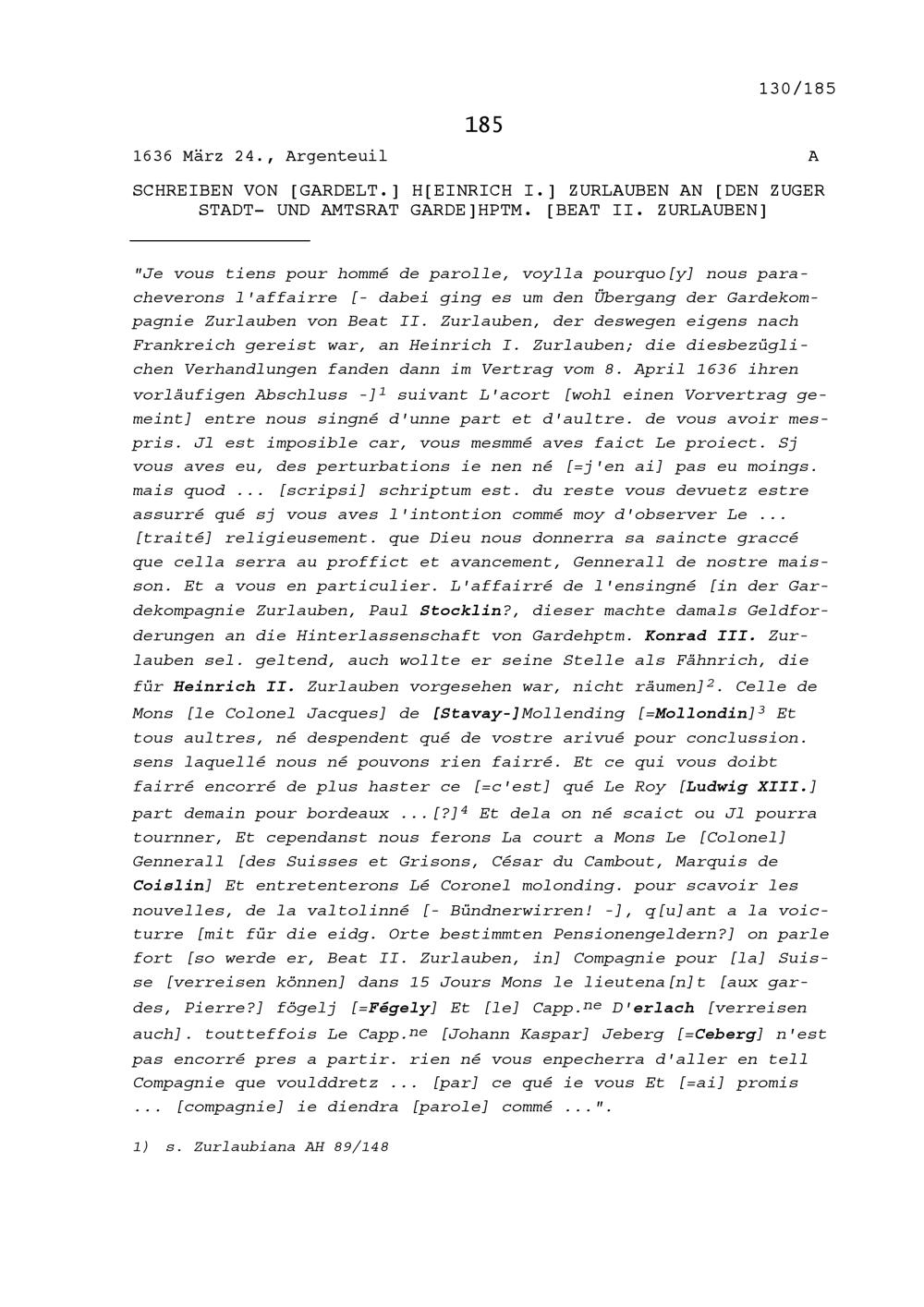 Schreiben von Heinrich I. Zurlauben, Gardeleutnant, an Beat II. Zurlauben, Stadt- und Amtrat Zug und Gardehauptmann