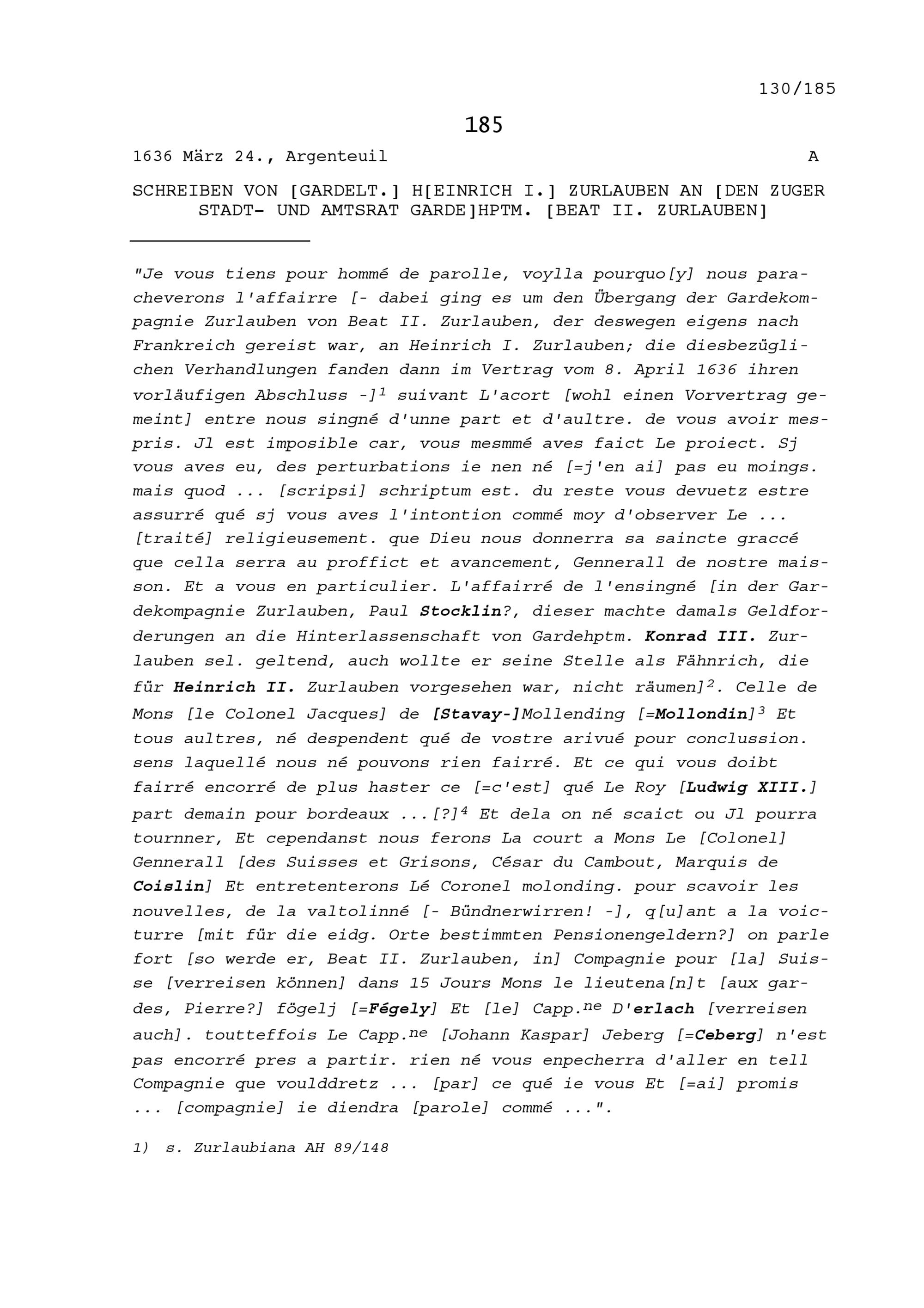 Schreiben von Heinrich I. Zurlauben, Gardeleutnant, an Beat II. Zurlauben, Stadt-...
