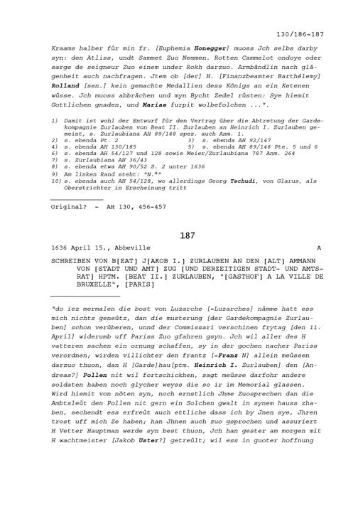 Schreiben von Beat Jakob I. Zurlauben an Beat II. Zurlauben, Altammann von Stadt...