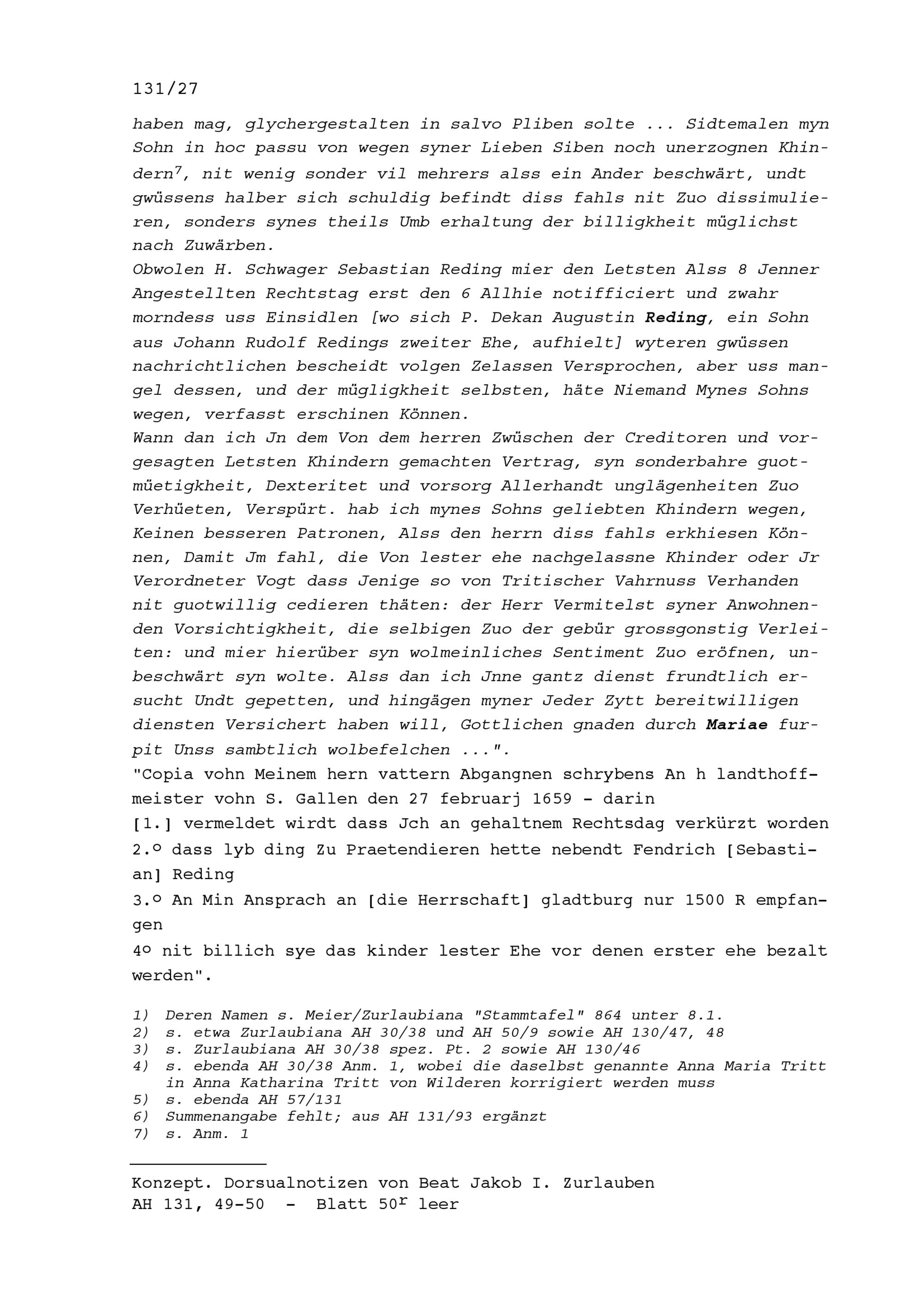 Schreiben von Beat II. Zurlauben, Stadt- und Amtrat Zug, an Fidel von Thurn, Landeshofmeister der Abtei Sankt Gallen