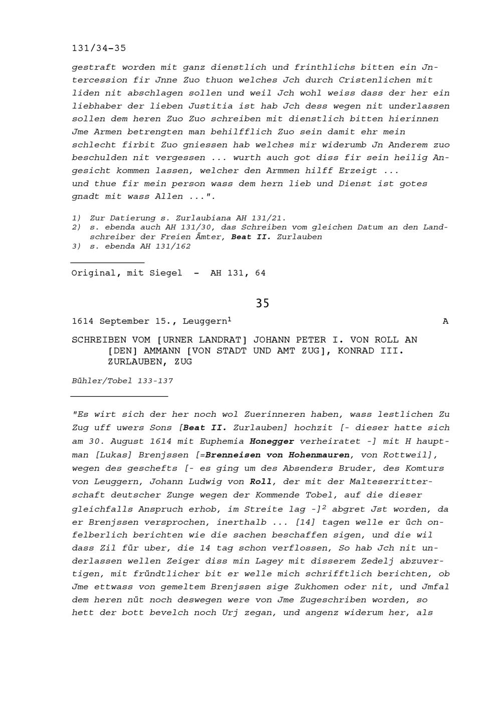 Schreiben von Johann Peter I. von Roll, Landrat Uri, an Konrad III. Zurlauben, Ammann von Stadt und Amt Zug, Zug