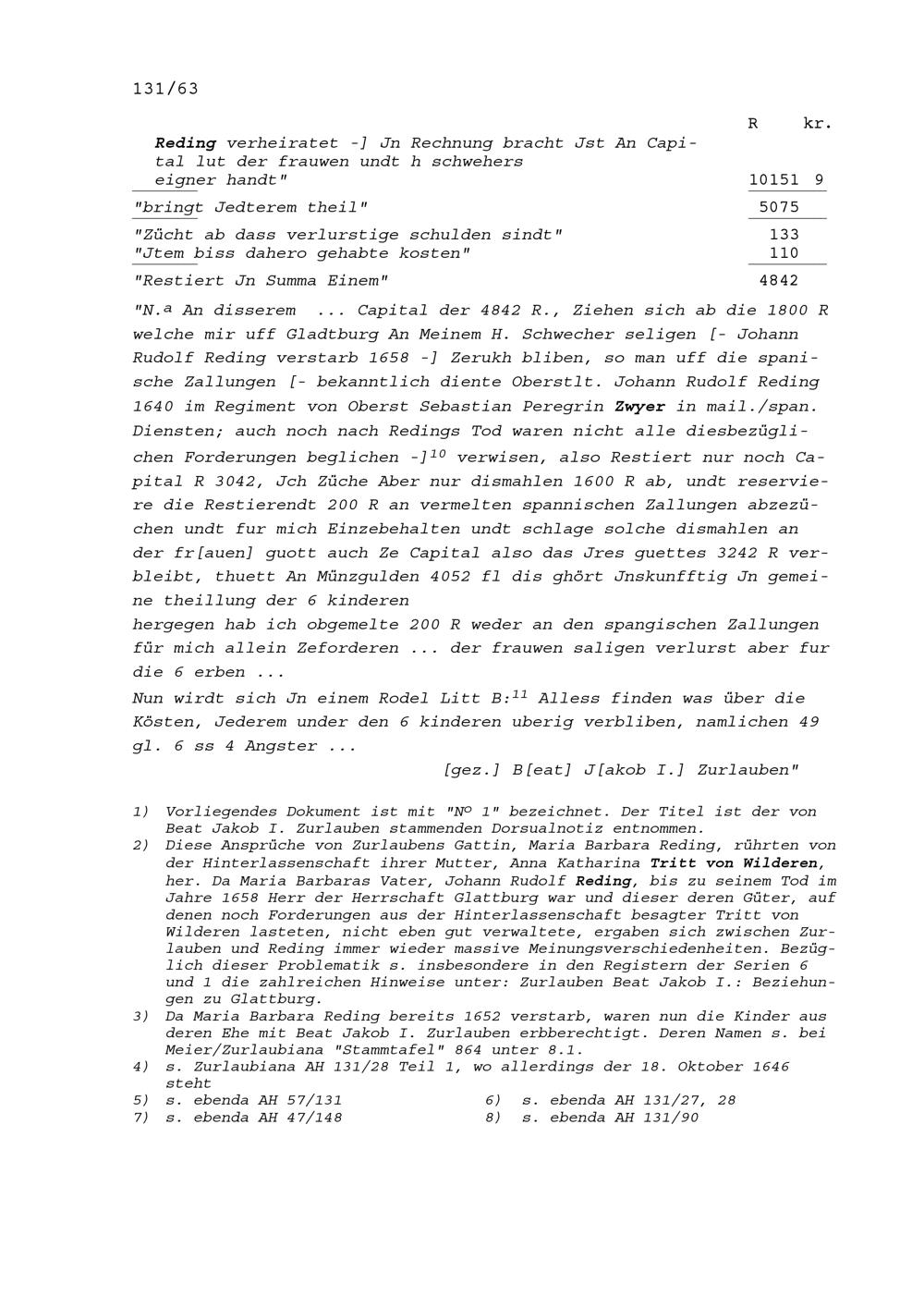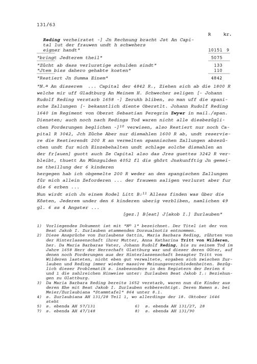 Verluste von Beat Jakob I. Zurlauben an der Herrschaft Glattburg und Anspruch seiner...