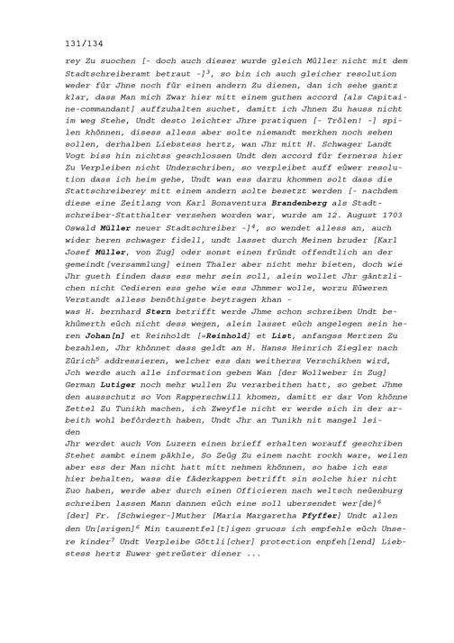 Schreiben von Wolfgang Damian Müller, Kommandant der Kompanie Zurlauben im Regiment...