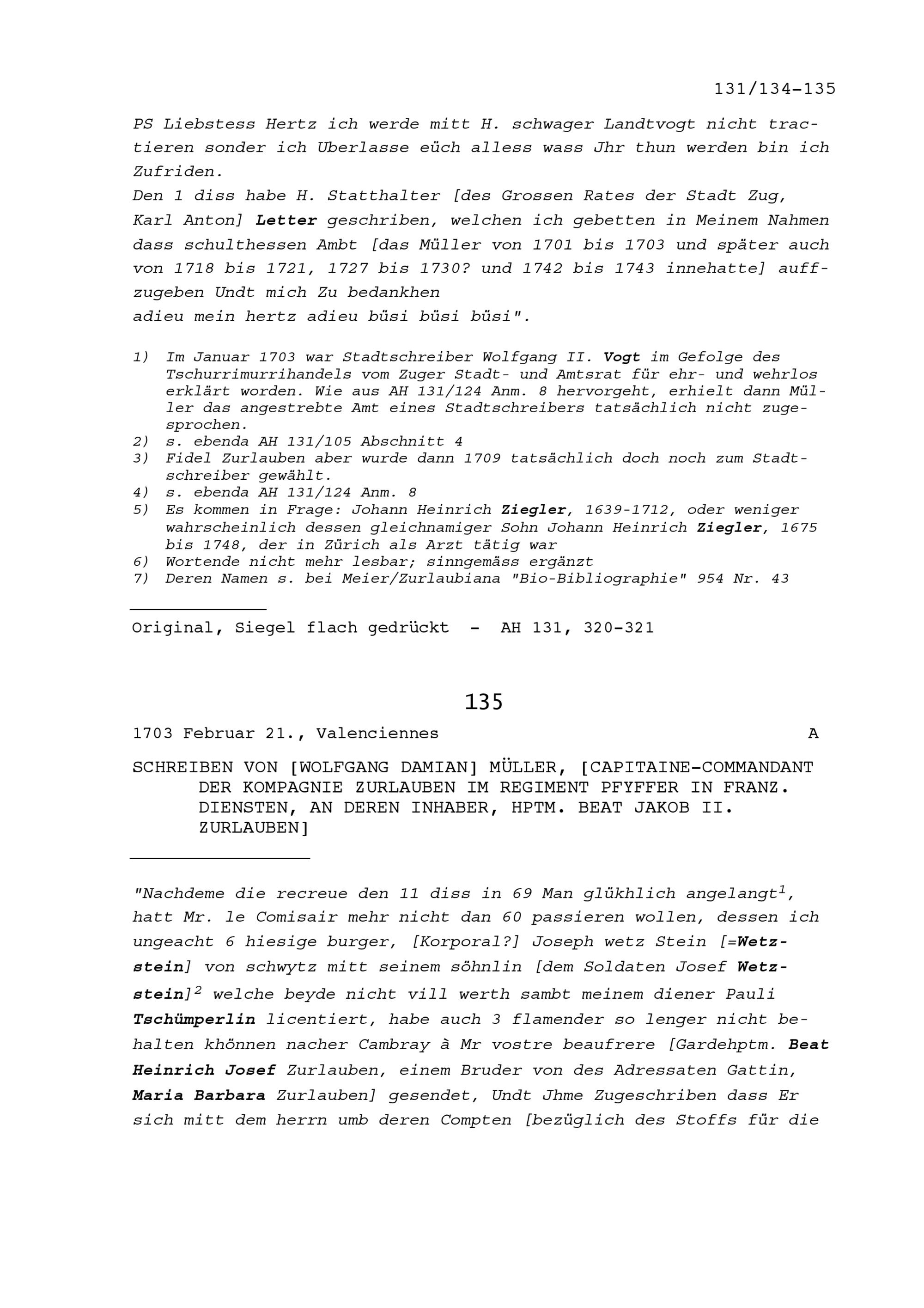 Schreiben von Wolfgang Damian Müller, Kommandant der Kompanie Zurlauben im Regiment...