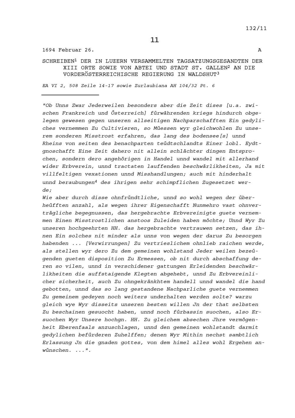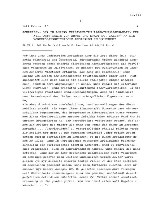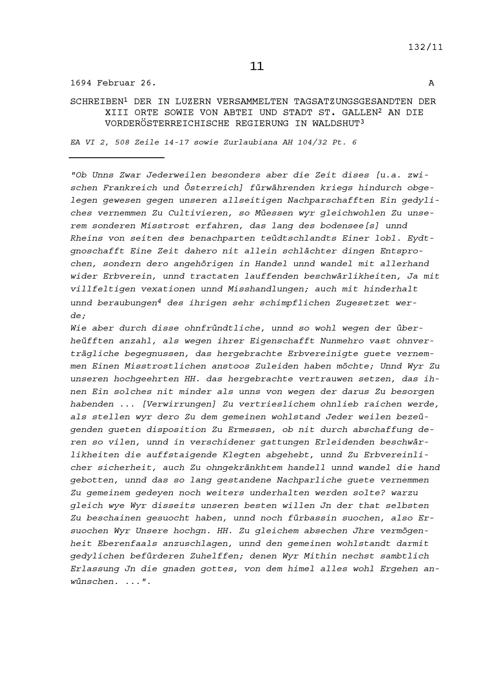 Schreiben der Tagsatzungsgesandten der Dreizehn Orte sowie von Abtei und Stadt Sankt Gallen in Luzern an die vorderösterreichische Regierung in Waldshut