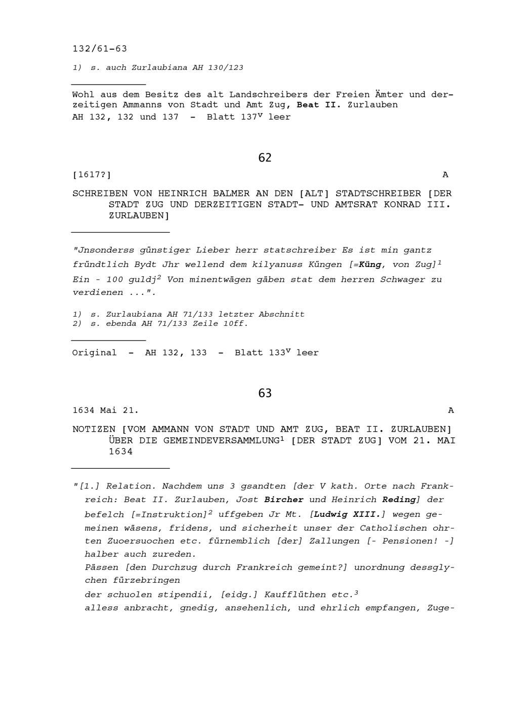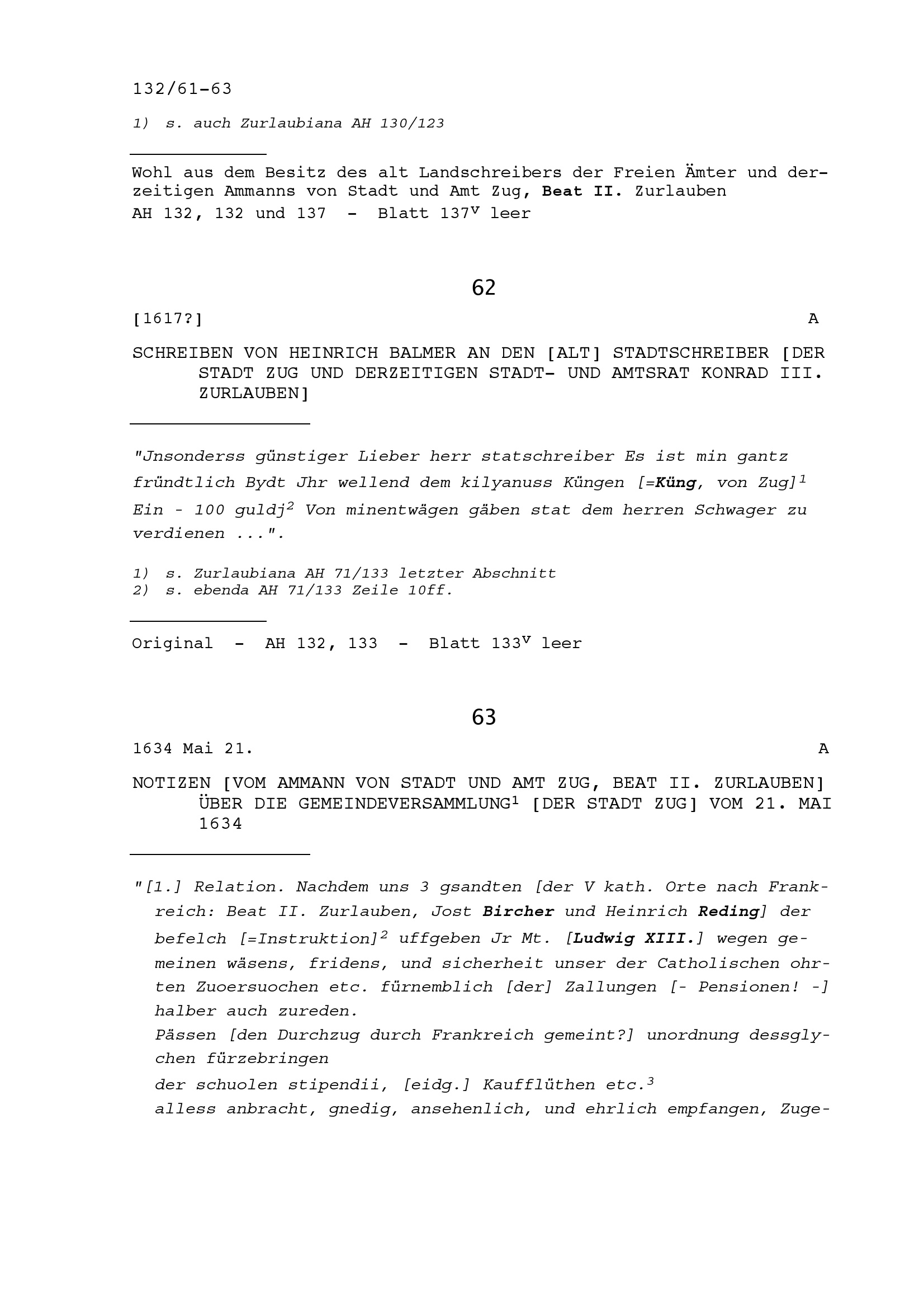 Schreiben von Heinrich Balmer an Konrad III. Zurlauben, Altstadtschreiber der Stadt Zug und Stadt- und Amtrat