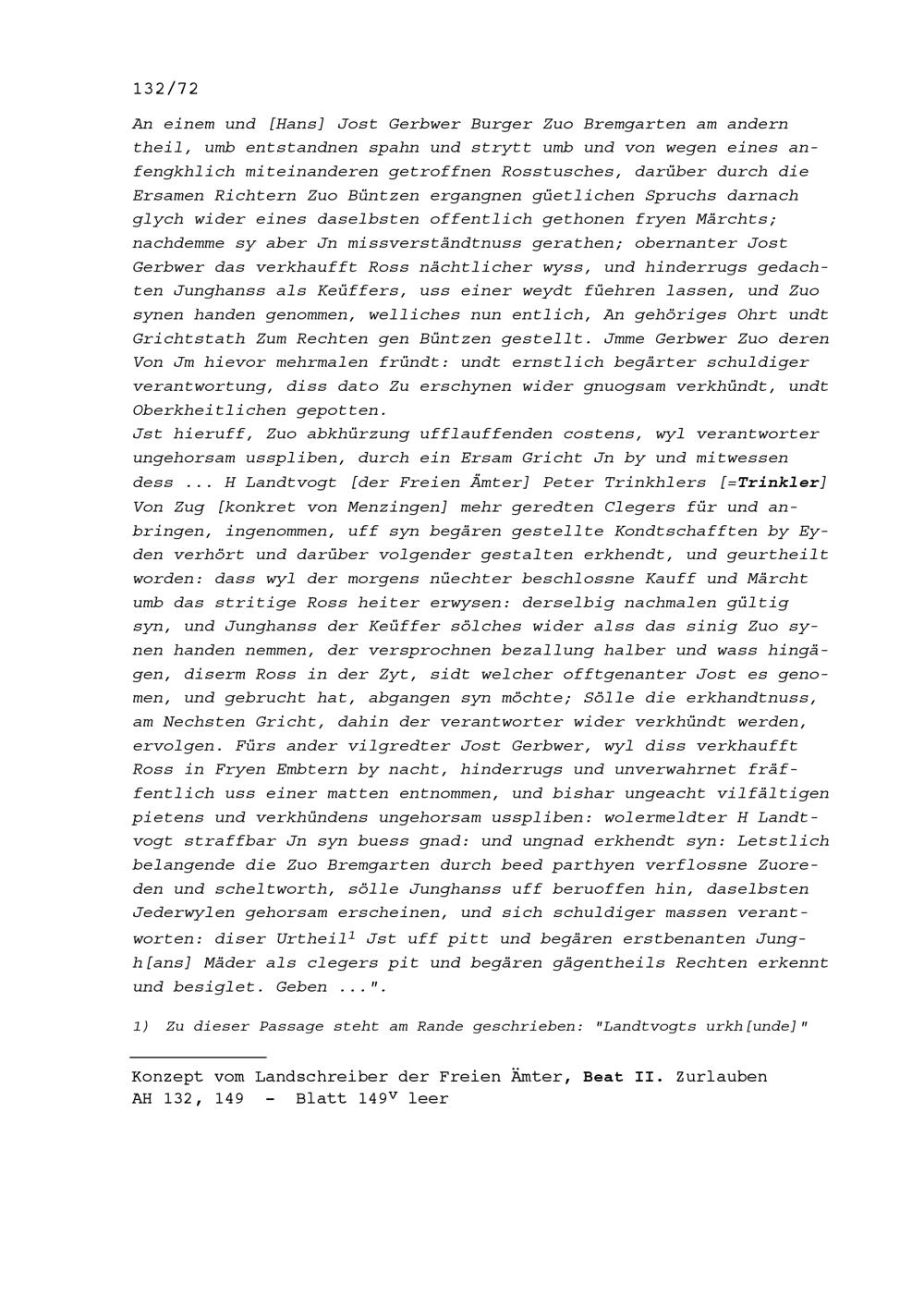 Urteil des Gerichts des Amts Bünzen in einem Streit zwischen Junghans Mäder von Fischbach,...