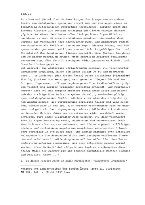 Urteil des Gerichts des Amts Bünzen in einem Streit zwischen Junghans Mäder von Fischbach, und Hans Jost Gerber, von Bremgarten