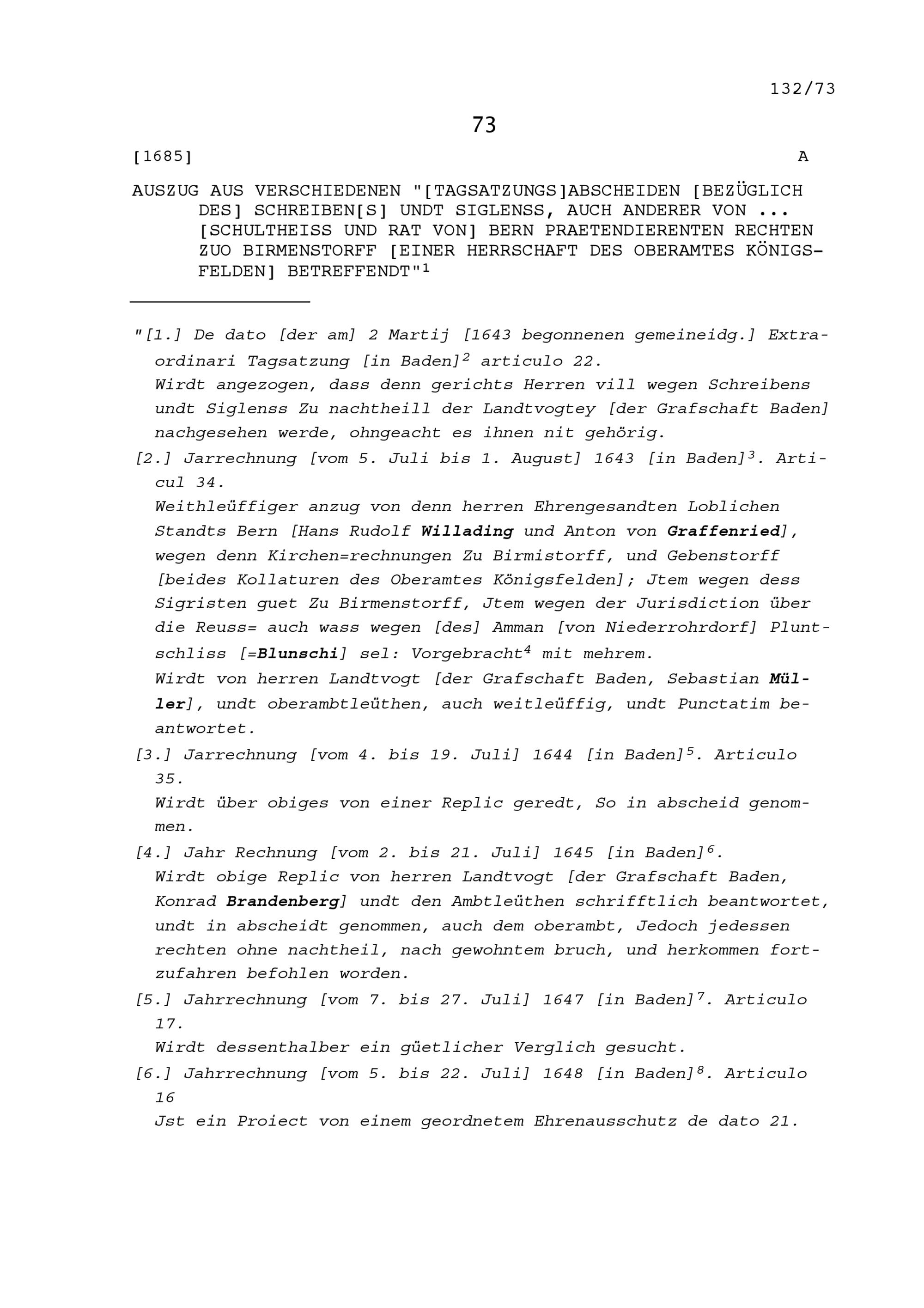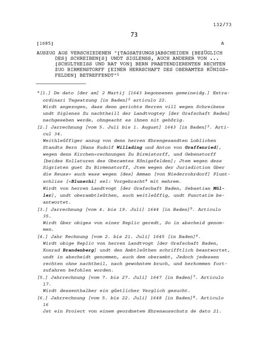 Abschiede den bezüglich des Schreibens und Sigelns auch anderer Rechte des Schultheiss und Rats Bern zu Birmenstorf, Herrschaft des Oberamtes Königsfelden betreffend