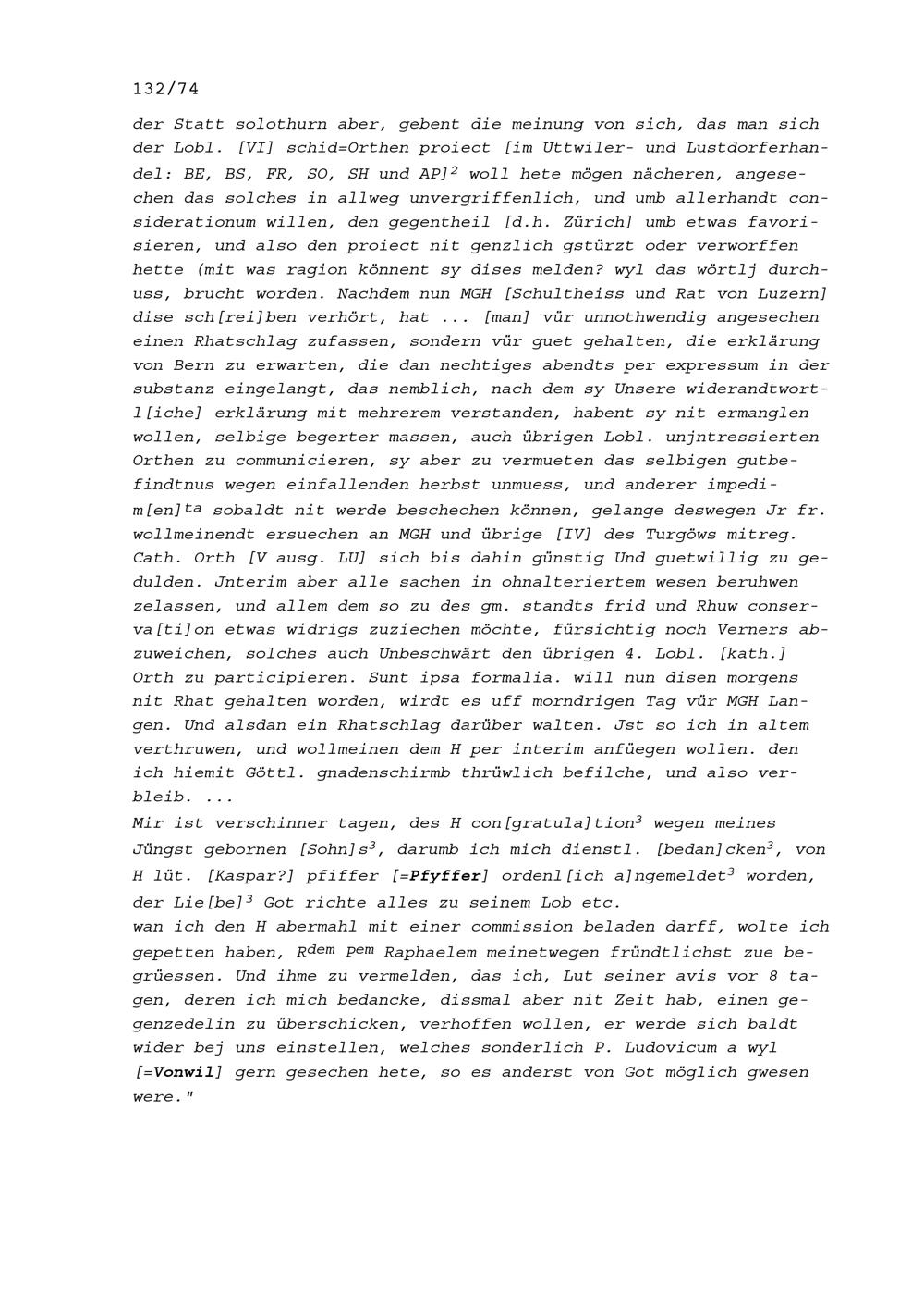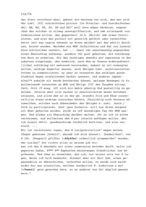 Schreiben von Ludwig Hartmann, Stadtschreiber, an Beat II. Zurlauben, Hauptmann und Stadt- und Amtrat, Zug